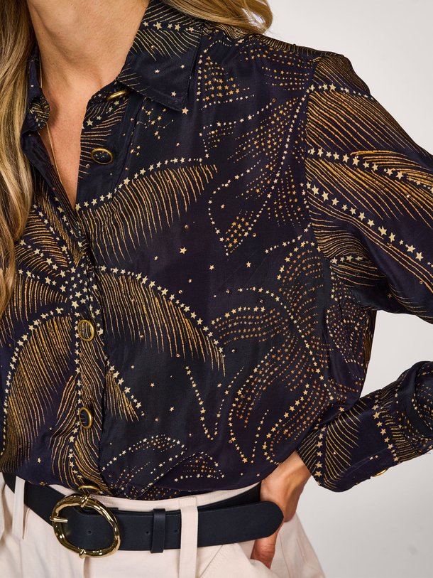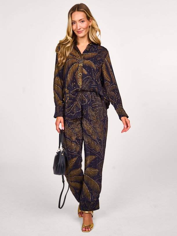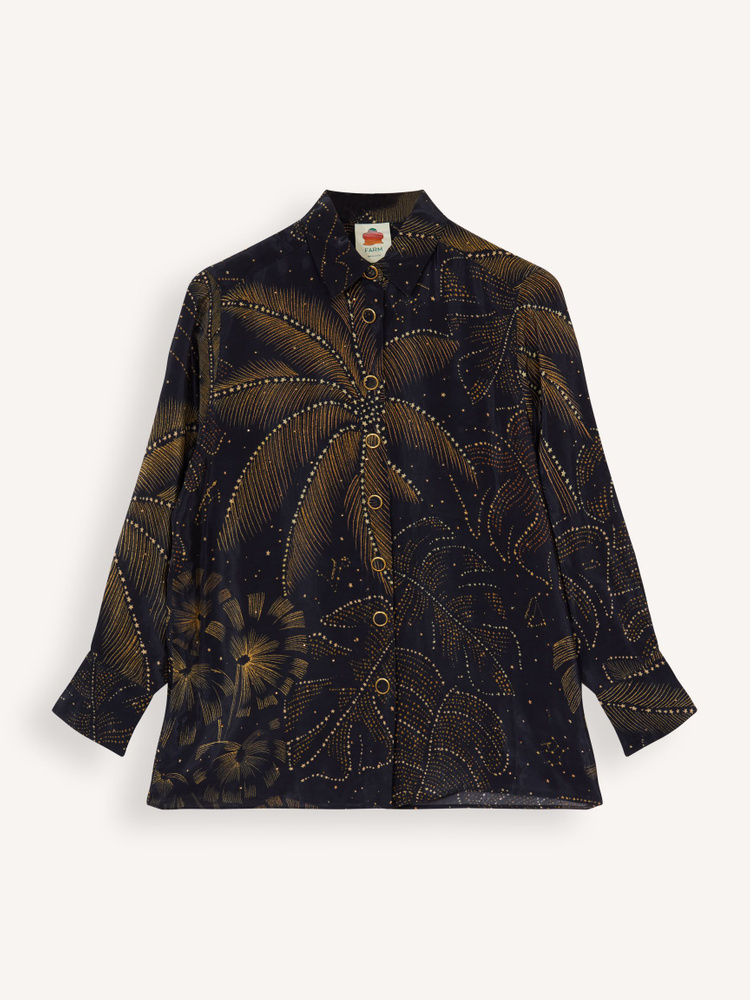 Farm Rio GOLDEN FOLIAGE BLACK PAJAMA SHIRT | Orangebag