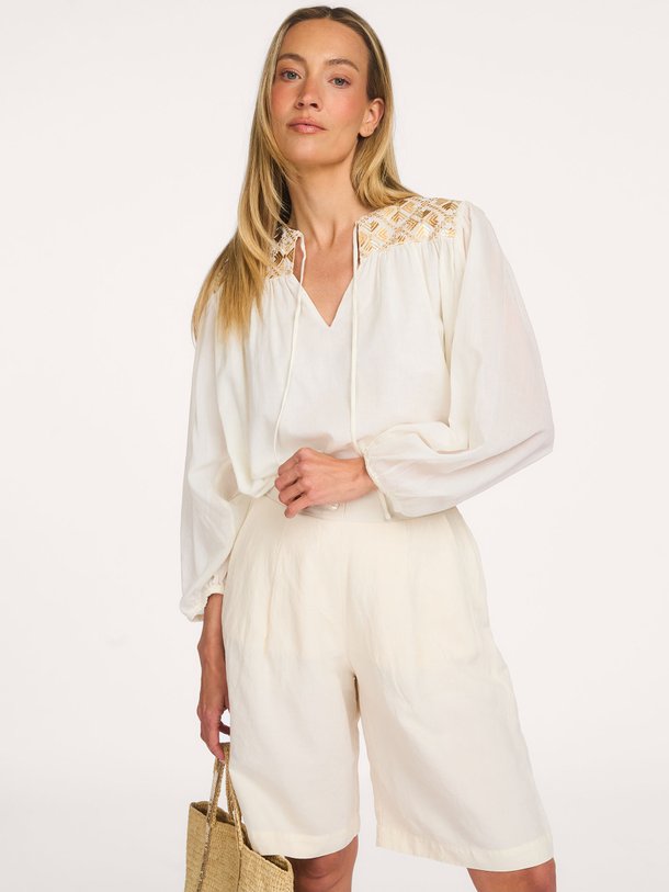 Greek Archaic Kori Katoenen blouse met borduursel | Orangebag
