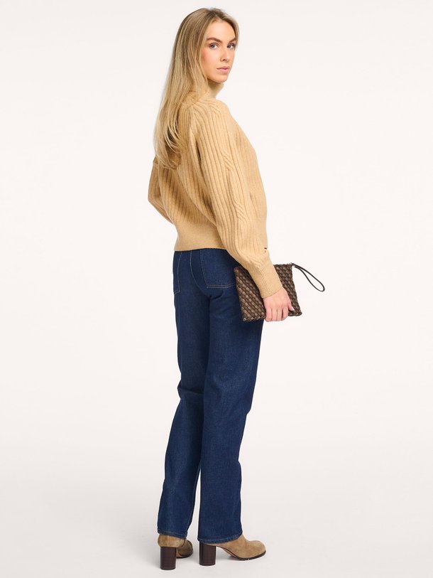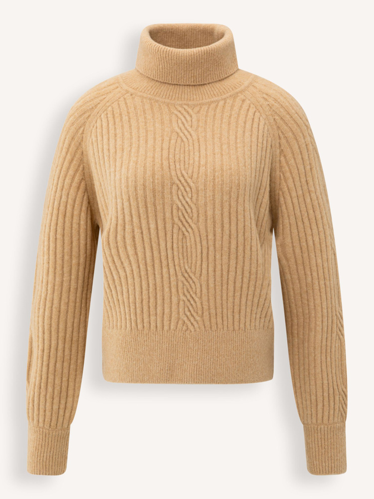 Yaya Ribbed turtleneck sweater with cable detail | Orangebag