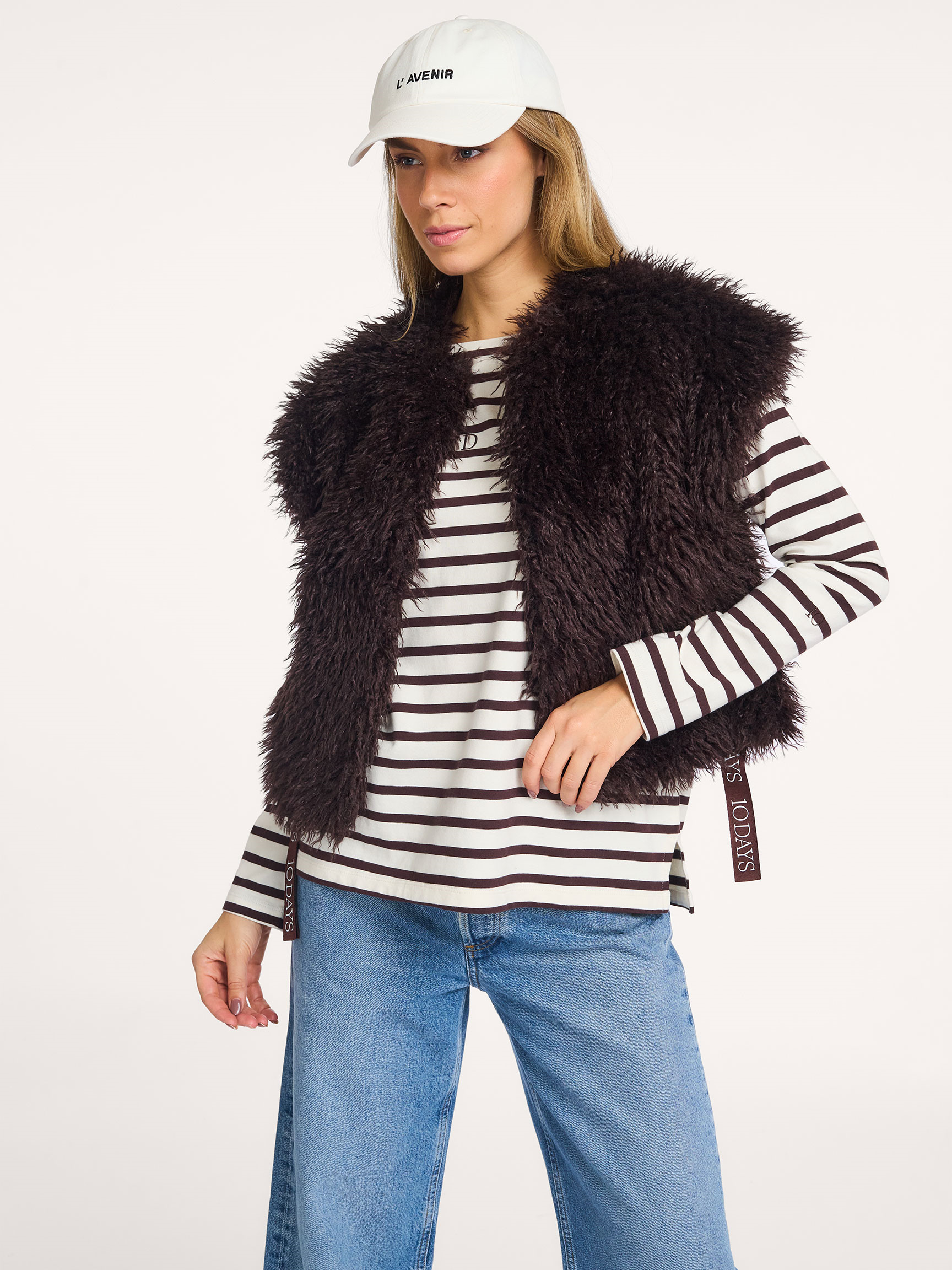 Back 10Days Woven fake fur gilet 219.90 Bonus 11.- Color: Bordeauxred Choose your size 36 (S) 219.90 38 (M) 219.90 40 (L) 219.90 Help on sizes True to size Our model Dané is 1.78m tall and wears size 36. Add to my bag Orangebag-number: S1341992 Order before 21:45, shipment today Free shipping from EUR 99,- 30 days consideration period Composition & Specifications Material Woven Fake fur Fabric: 100% polyesterLining: 100% polyester Hand wash Fit Loose fitted model True to size Our model Dané is 1.78m tall and wears size 36. Details Sleeveless Round neckline Hook fastening Side pocket(s) Application Fully lined Length in size 36 approximately 56 cm. Style: the Bobbie gilet 20-500-5204 1319 deep wine Orangebag-number: S1341992 Combine with More from 10Days Shipping & Return Free, insured shipping (≥EUR 99) to NL, BE and DE. Free return service from NL, BE and DE for an exchange; EUR 4.95 without an exchange. Next day delivery on orders made on business days before 21:45 hrs (NL,BE). DE + 1 business day. Insured shipping. Options; not at neighbor, evening or pick up point Free shipping on exchange orders EUR 99 and up (all Countries) Easy online exchange without payment (also with refund) Refund paid within 3 business days .