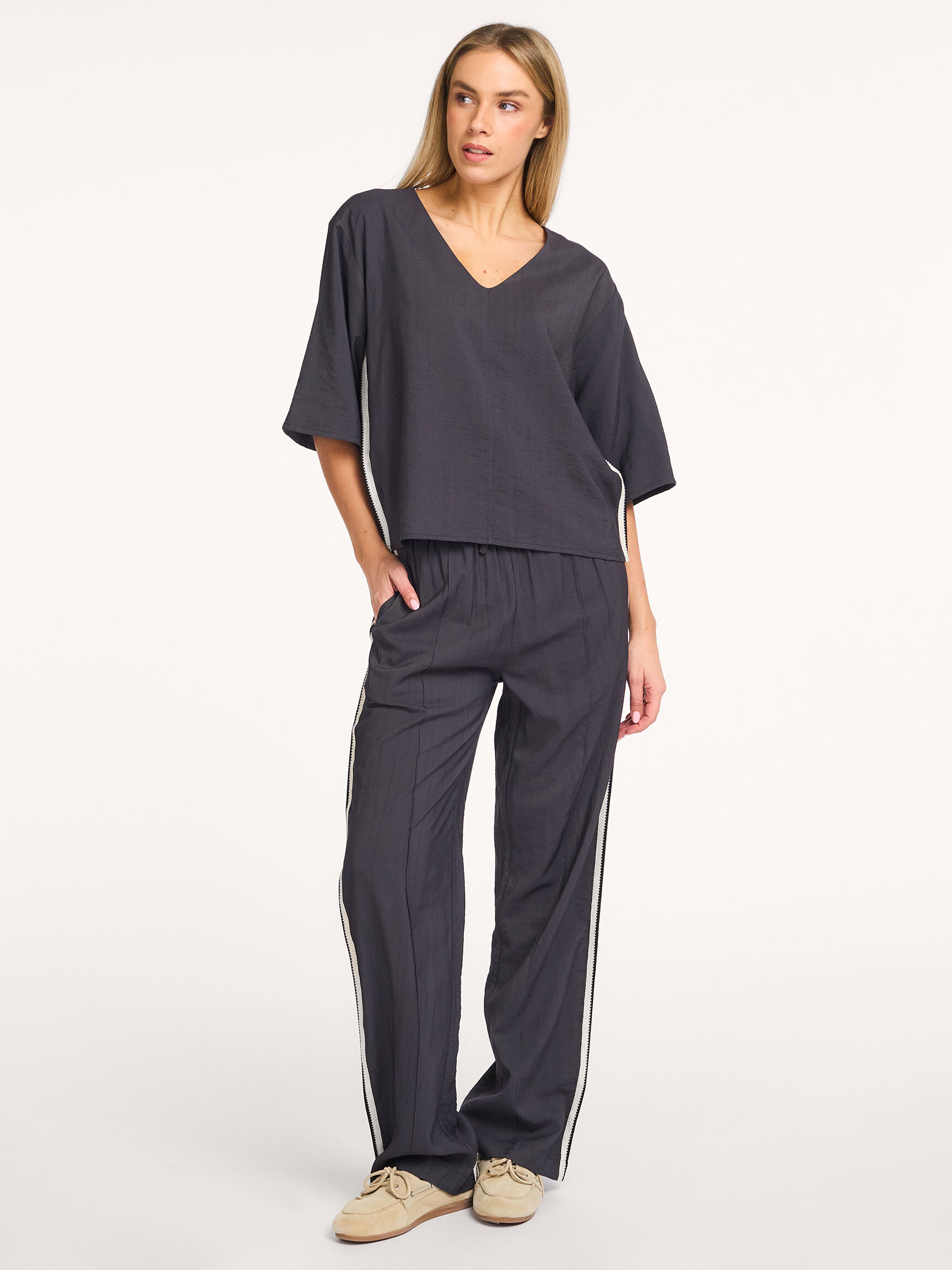 Back Alchemist Lou, viscose mix trousers Sustainable 139.95 Bonus 7.- Color: Anthracite Choose your size 34 (34) sold out, email me 36 (36) sold out, email me 38 (38) 139.95 40 (40) 139.95 42 (42) 139.95 last item Help on sizes True to size Our model Dané is 1.78m tall and wears size 36. Add to my bag Orangebag-number: S1384566 Order before 21:45, shipment today Free shipping from EUR 99,- 30 days consideration period Composition & Specifications Material Woven Fabric: 89% ecoliva viscose, 11% polyamide. 30C machine wash Fit Loose fitted model True to size Our model Dané is 1.78m tall and wears size 36. Details Mid waist Viscose Elastic waistband Drawstring Side pocket(s) Decorative pocket(s) Trim at the side seams Lenght inside legs 36 in size approximately 80 cm. Style: Pants Lou SP0110 B96 Antra Orangebag-number: S1384566 Keep me posted Size no longer available? Receive an email as soon as it becomes available. Size Choose your size 34 (34) : 139.95 36 (36) : 139.95 Name Email Combine with More from Alchemist Shipping & Return Free, insured shipping (≥EUR 99) to NL, BE and DE. Free return service from NL, BE and DE for an exchange; EUR 4.95 without an exchange. Next day delivery on orders made on business days before 21:45 hrs (NL,BE). DE + 1 business day. Insured shipping. Options; not at neighbor, evening or pick up point Free shipping on exchange orders EUR 99 and up (all Countries) Easy online exchange without payment (also with refund) Refund paid within 3 business days .
