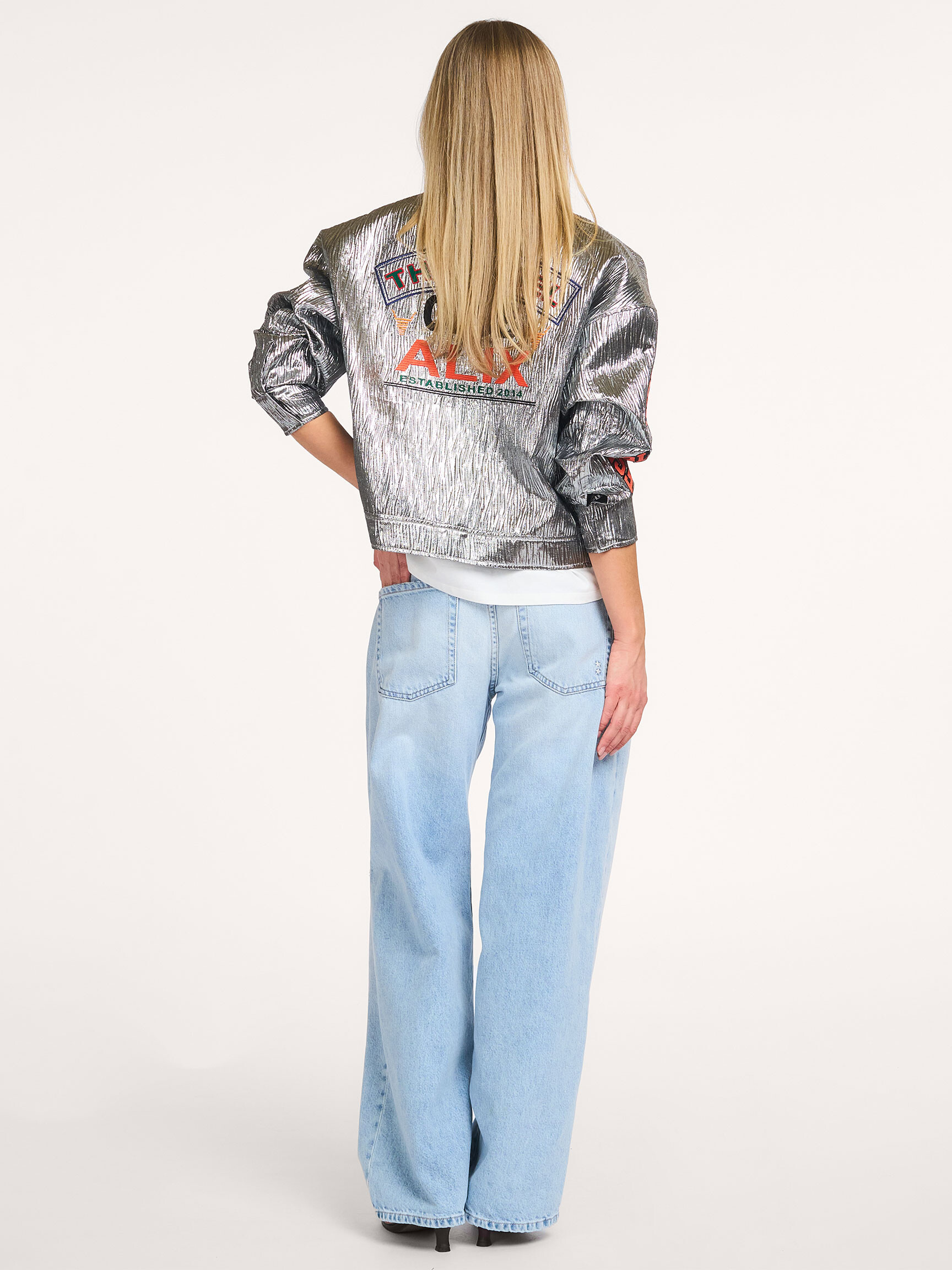 Back Alix The Label Woven metallic jacket 179.90 Bonus 9.- Color: Silver colour Choose your size 34 (XS) 179.90 last item 36 (S) sold out, email me 38 (M) 179.90 last item 40 (L) 179.90 42 (XL) 179.90 last item Help on sizes True to size Our model Dané is 1.78m tall and wears size 36. Add to my bag Orangebag-number: S1385773 Order before 21:45, shipment today Free shipping from EUR 99,- 30 days consideration period Composition & Specifications Material Woven Metallic Fabric: 85% polyester, 15% metallic.Lining: 100% polyester Dry clean only Fit Loose fitted True to size Our model Dané is 1.78m tall and wears size 36. Details Embroidered Long sleeves Cuffs with button(s) Collar Press button fastening Flap pocket(s) Fully lined Length in size 36 approximately 57 cm. Style: ladies woven silver artwork jacket 2603457559 850 silver Orangebag-number: S1385773 Keep me posted Size no longer available? Receive an email as soon as it becomes available. Size Choose your size 36 (S) : 179.90 Name Email Combine with More from Alix The Label Shipping & Return Free, insured shipping (≥EUR 99) to NL, BE and DE. For returns from NL, BE, and DE, we charge a fee of EUR 4.95 Next day delivery on orders made on business days before 21:45 hrs (NL,BE). DE + 1 business day. Insured shipping. Options; not at neighbor, evening or pick up point Free shipping on exchange orders EUR 99 and up (all Countries) Easy online exchange without payment (also with refund) Refund paid within 3 business days .