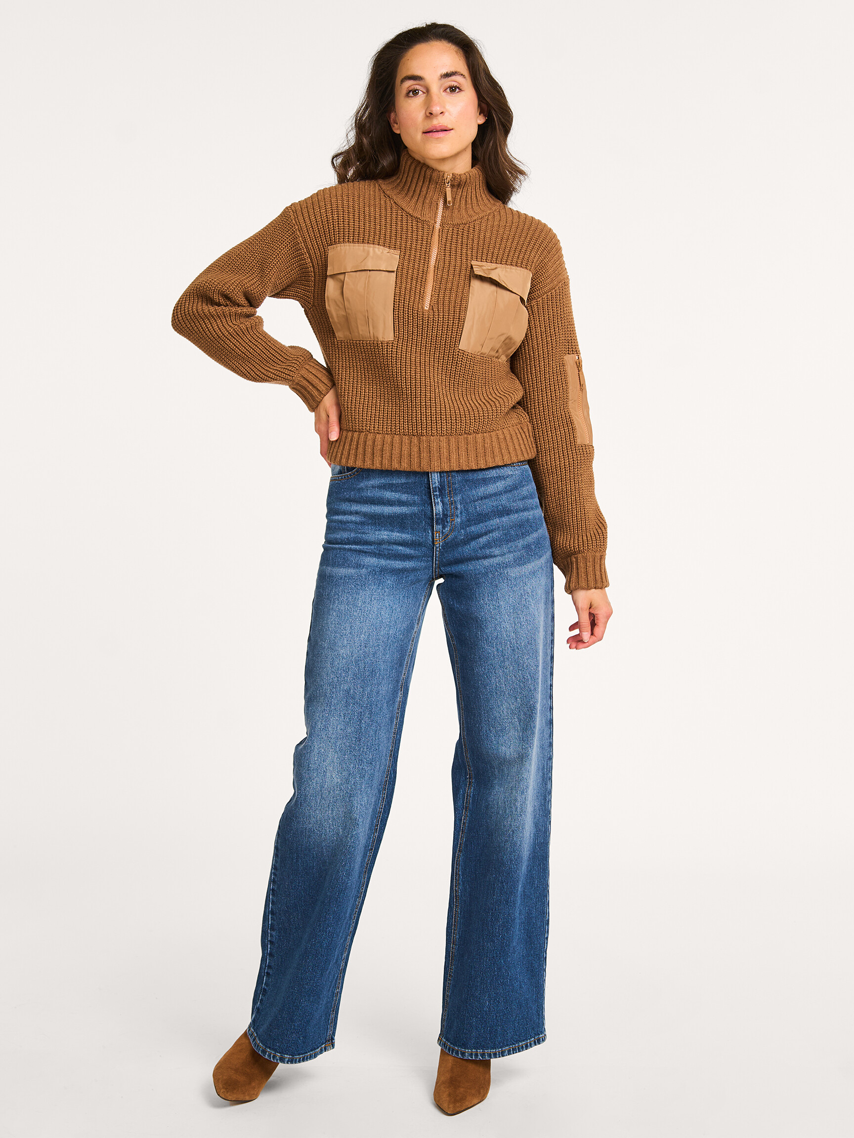 - Ribbed at the neckline, at the bottom of the sleeves and at the bottom