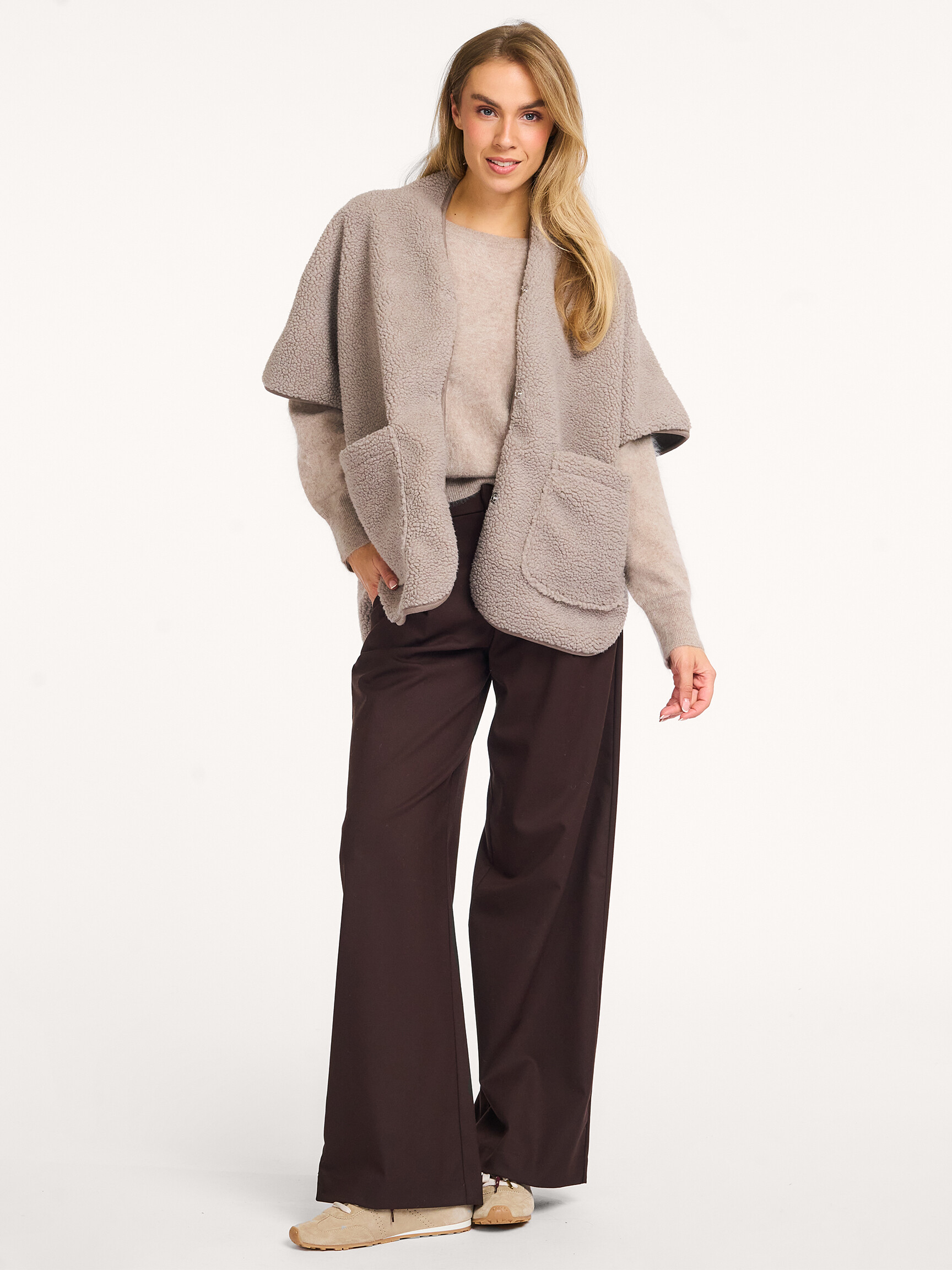 Back Club L’avenir Amaya, woven teddy gilet 174.93 249.90 Color: Taupe Choose your size 34 (XS) 174.93 last item 38 (M) 174.93 last item 40 (L) 174.93 last item Help on sizes True to size Our model Dané is 1.78m tall and wears size 36. Add to my bag Orangebag-number: S1341391 Order before 21:45, shipment today Free shipping from EUR 99,- 30 days consideration period Composition & Specifications Material Woven Teddy Fabric: 100% polyester 30C machine wash Fit Slightly oversized True to size Our model Dané is 1.78m tall and wears size 36. Details Short sleeves V-neckline Press button fastening Stitched pocket(s) Trims Unlined Length in size 36 approximately 71 cm. Style: Amaya'CL 5557328 Taupe Orangebag-number: S1341391 Combine with More from Club L’avenir Shipping & Return Free, insured shipping (≥EUR 99) to NL, BE and DE. Free return service from NL, BE and DE for an exchange; EUR 4.95 without an exchange. Next day delivery on orders made on business days before 21:45 hrs (NL,BE). DE + 1 business day. Insured shipping. Options; not at neighbor, evening or pick up point Free shipping on exchange orders EUR 99 and up (all Countries) Easy online exchange without payment (also with refund) Refund paid within 3 business days .