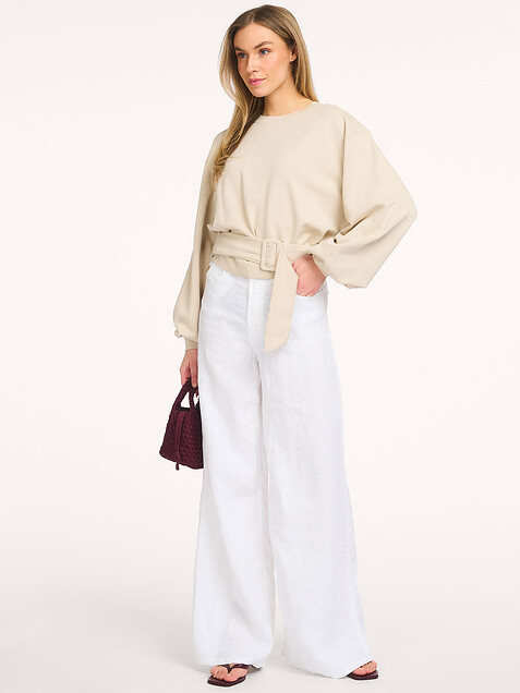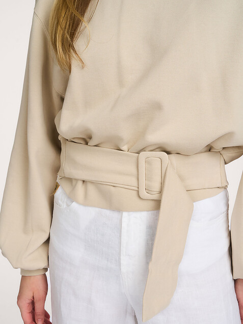 - Ribbed at the neckline, at the bottom of the sleeves and at the bottom