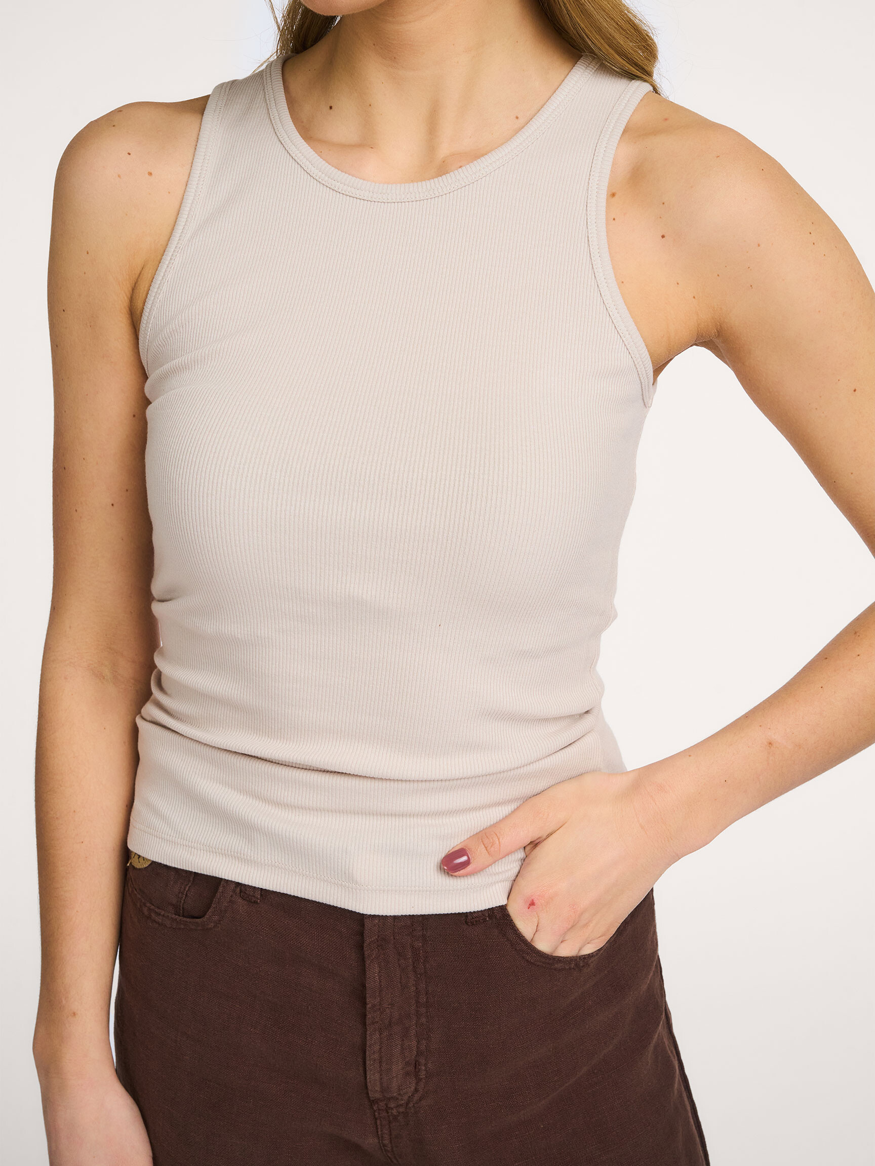- Round ribbed neckline