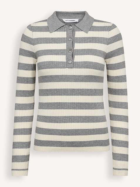 - Style: BonnyCC Stripe L/S Polo Knit 42009 138 Light Grey