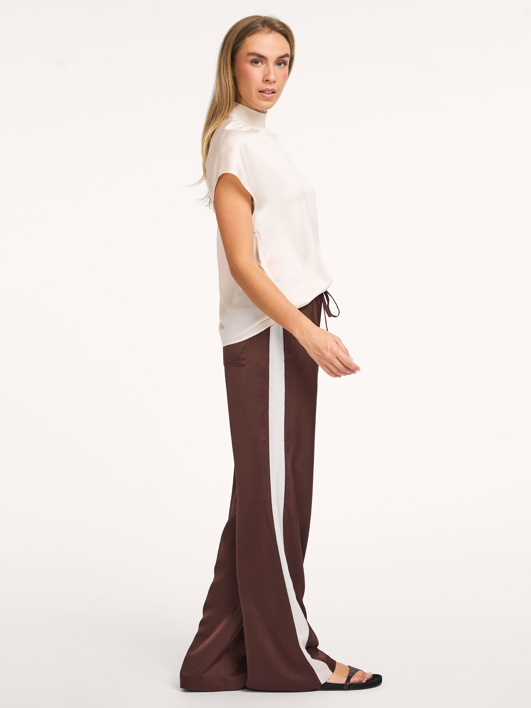 - Style: Dare striped satin pants 261301 8730 Chocolate Brown