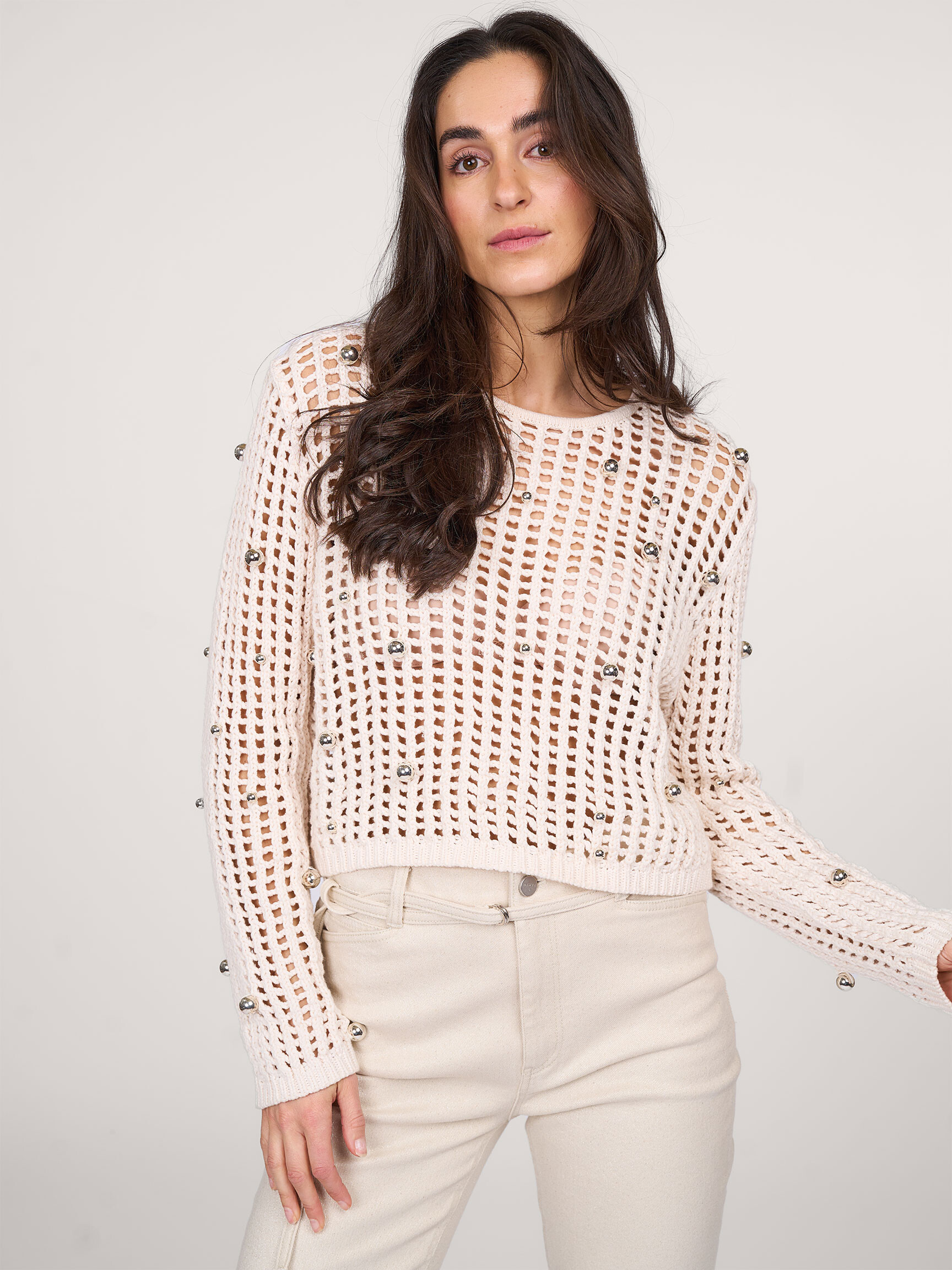 - Style: Valon beaded sweater 252402 1175 Butter Cream