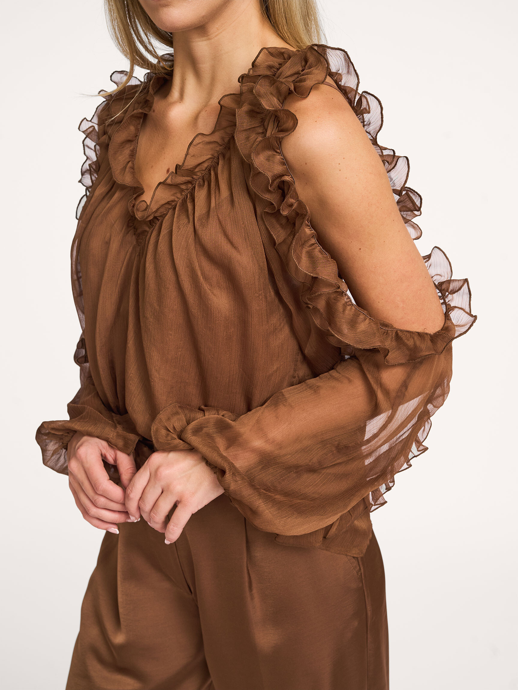 Back Dante 6 Harmony, woven top 199.- Bonus 9.95 Color: Brown Choose your size 34 (34) 199.- last item 36 (36) 199.- last item 38 (38) sold out, email me 40 (40) 199.- last item 42 (42) 199.- last item Help on sizes True to size Our model Dané is 1.78m tall and wears size 36. Add to my bag Orangebag-number: S1370667 Order before 21:45, shipment today Free shipping from EUR 99,- 30 days consideration period Composition & Specifications Material Woven Transparent material Fabric: 100% polyesterLining: 100% viscose 30C machine wash Fit Loose fitted model True to size Our model Dané is 1.78m tall and wears size 36. Details Long sleeves Pleated elastic at the bottom of the sleeves Open shoulders V-neckline Adjustable shoulder straps Ruffles Length in size 36 approximately 60 cm Style: Harmony boho chiffon top 261332 8300 Mocha mousse Orangebag-number: S1370667 Keep me posted Size no longer available? Receive an email as soon as it becomes available. Size Choose your size 38 (38) : 199.- Name Email Combine with More from Dante 6 Shipping & Return Free, insured shipping (≥EUR 99) to NL, BE and DE. For returns from NL, BE, and DE, we charge a fee of EUR 4.95 Next day delivery on orders made on business days before 21:45 hrs (NL,BE). DE + 1 business day. Insured shipping. Options; not at neighbor, evening or pick up point Free shipping on exchange orders EUR 99 and up (all Countries) Easy online exchange without payment (also with refund) Refund paid within 3 business days .