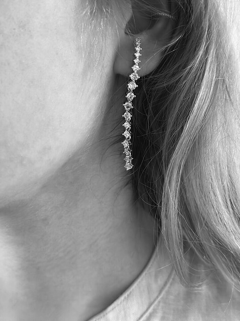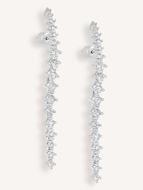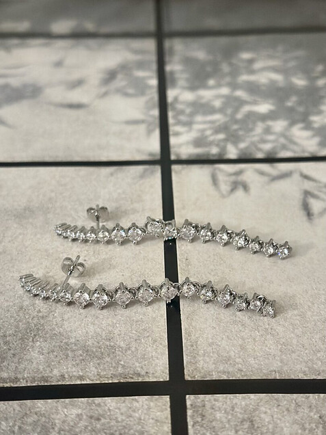 - Style: Lange oorstekers met strass op het oor OOR30004 Zilver