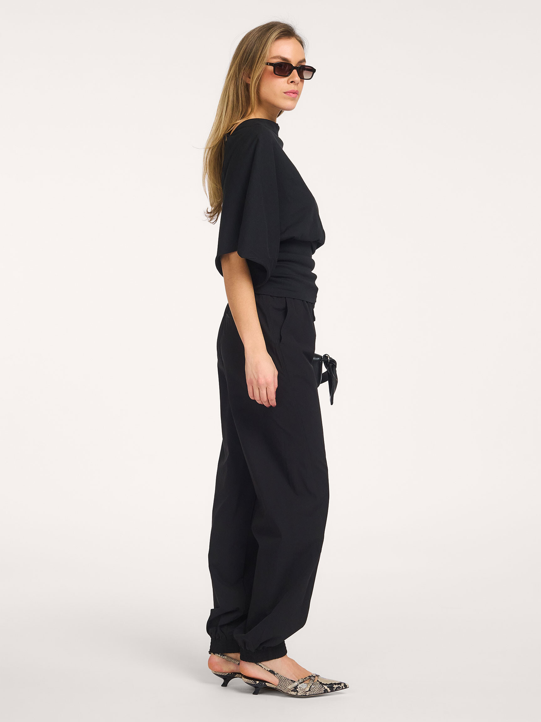 - Pleated elastic at the bottom of the legs