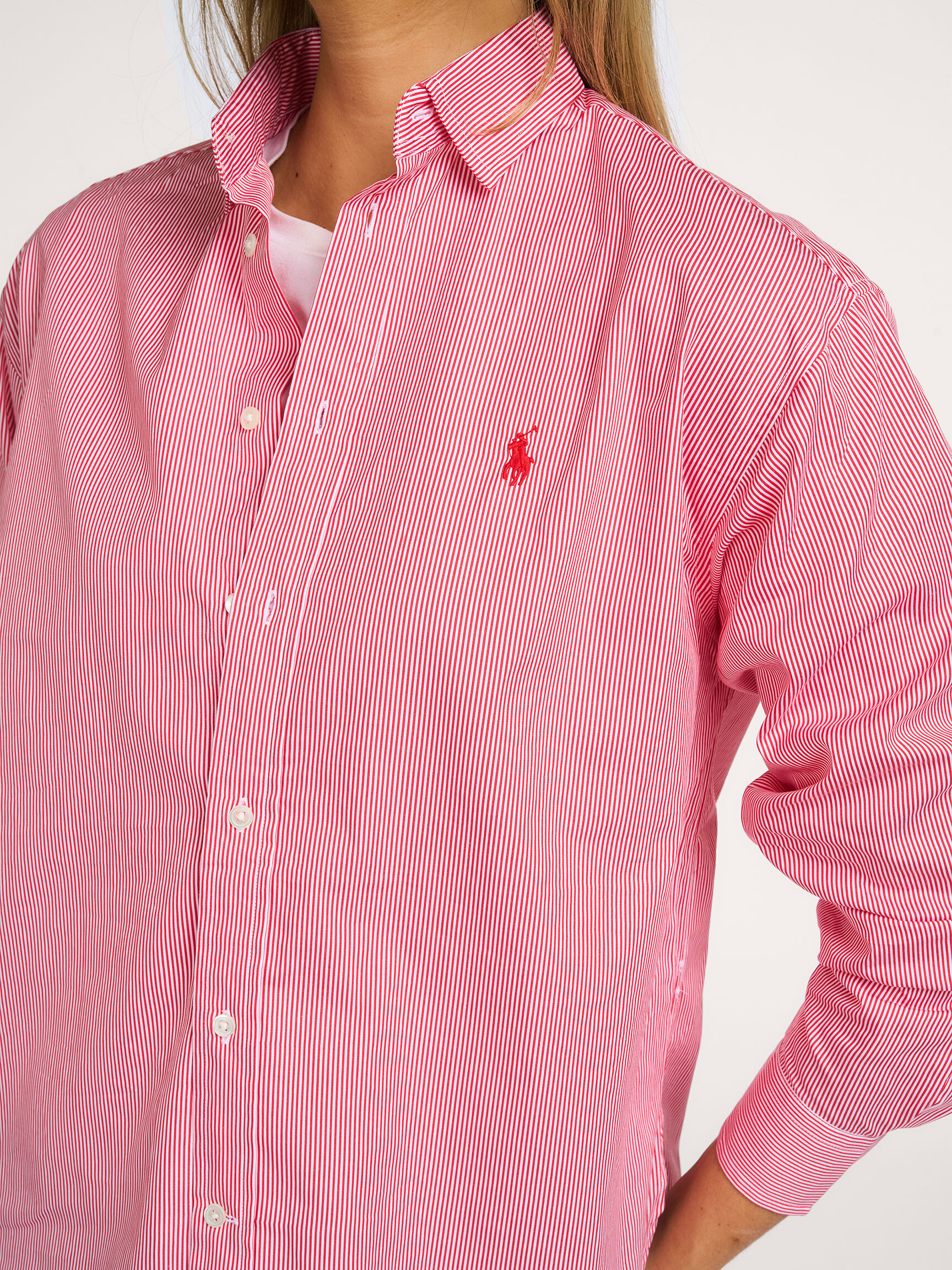 Back Ralph Lauren Cotton striped blouse 195.- Bonus 9.75 Color: Red Choose your size 34 (XS) sold out, email me 36 (S) sold out, email me 38 (M) 195.- 40 (L) 195.- last item Help on sizes True to size Our model Dané is 1.78m tall and wears size 36. Add to my bag Orangebag-number: S1380409 Order before 21:45, shipment today Free shipping from EUR 99,- 30 days consideration period Composition & Specifications Material Woven Cotton Fabric: 100% cotton 30C machine wash Fit Loose fitted model True to size Our model Dané is 1.78m tall and wears size 36. Details Embroidered Logo Stripes Long sleeves Cuffs with buttons Collar Button fastening Split(s) at the side seams The back is longer than the front Length in size 36 approximately 69 cm Style: LS RMSY ST-LONG SLEEVE-BLOUSE 211910743500 2000A RED WHITE 2000A RED WHITE Orangebag-number: S1380409 Keep me posted Size no longer available? Receive an email as soon as it becomes available. Size Choose your size 34 (XS) : 195.- 36 (S) : 195.- Name Email Combine with More from Ralph Lauren Shipping & Return Free, insured shipping (≥EUR 99) to NL, BE and DE. Free return service from NL, BE and DE for an exchange; EUR 4.95 without an exchange. Next day delivery on orders made on business days before 21:45 hrs (NL,BE). DE + 1 business day. Insured shipping. Options; not at neighbor, evening or pick up point Free shipping on exchange orders EUR 99 and up (all Countries) Easy online exchange without payment (also with refund) Refund paid within 3 business days .