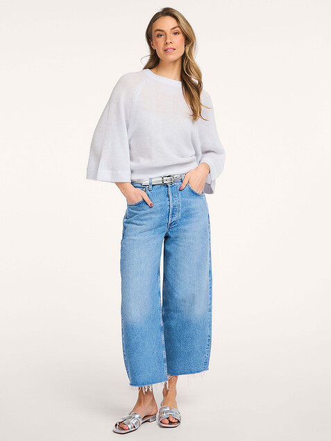 - Style: VELUSE Knitted wide sleeves alpaca blend sweater T601-1380 121 Denim blue