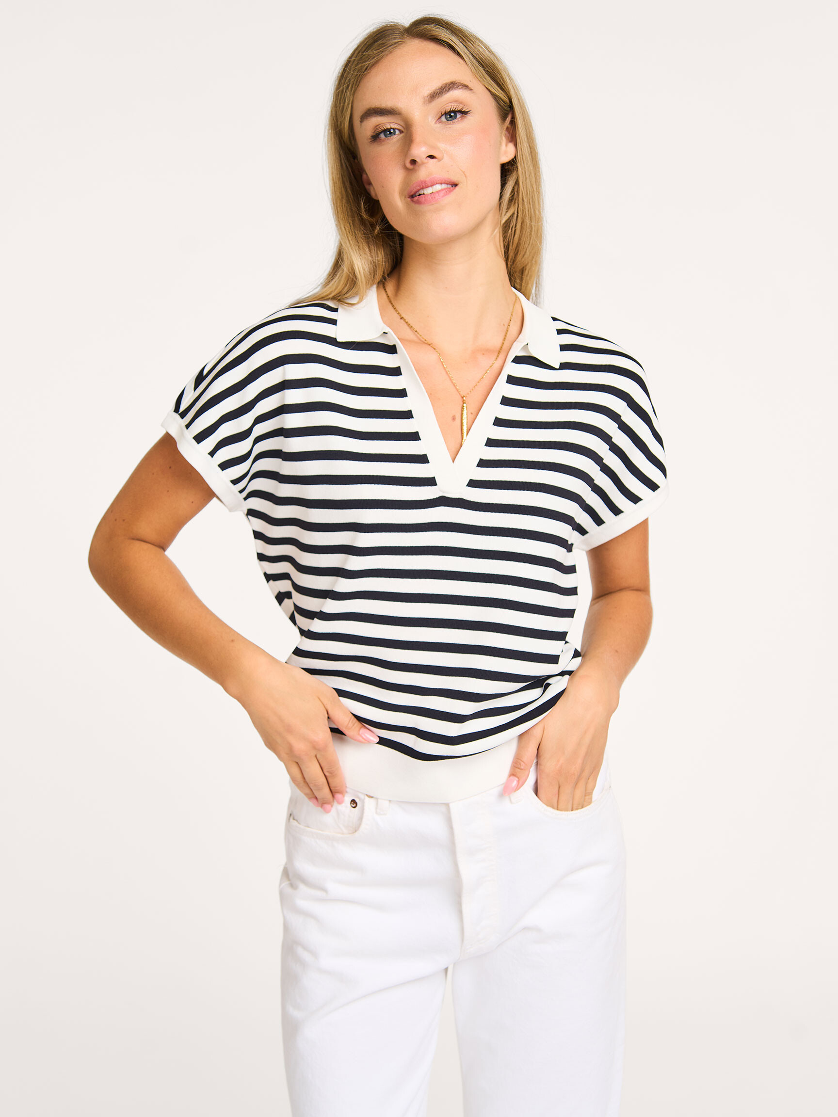 - Style: Drew stripe ssl pullover 12830 1169 off white/dk blue