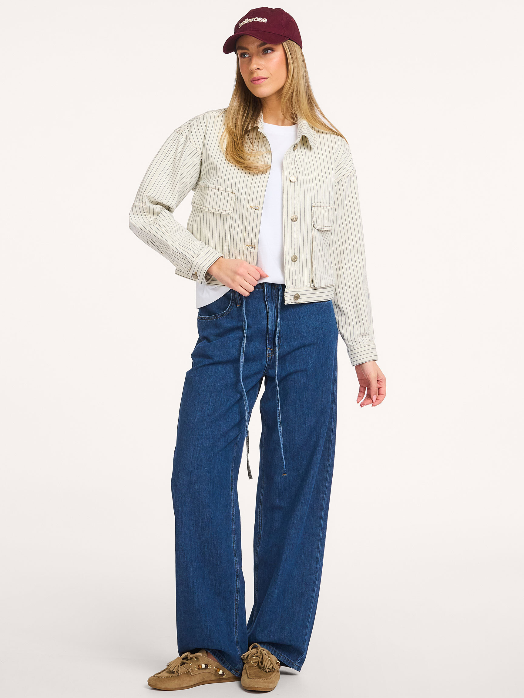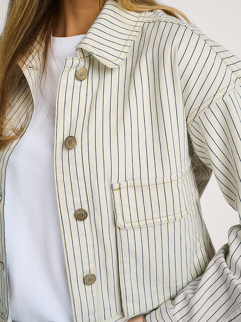 - Style: Boxy jacket Yarn dyed stripe 1s1289-12403 122 Ivory