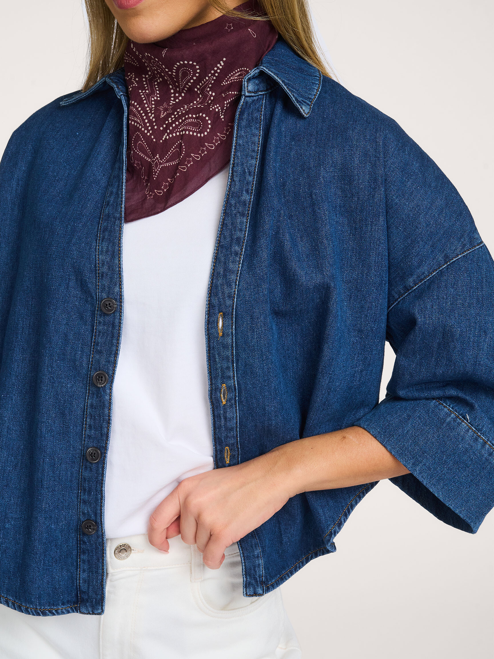 - Style: Blouse denim kimono Light cotton twill 2s3346-5184 453 Denim