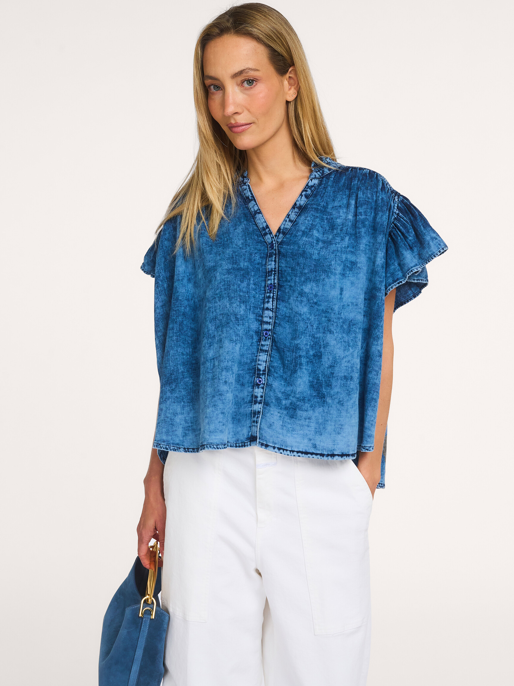Cotton denim look blouse