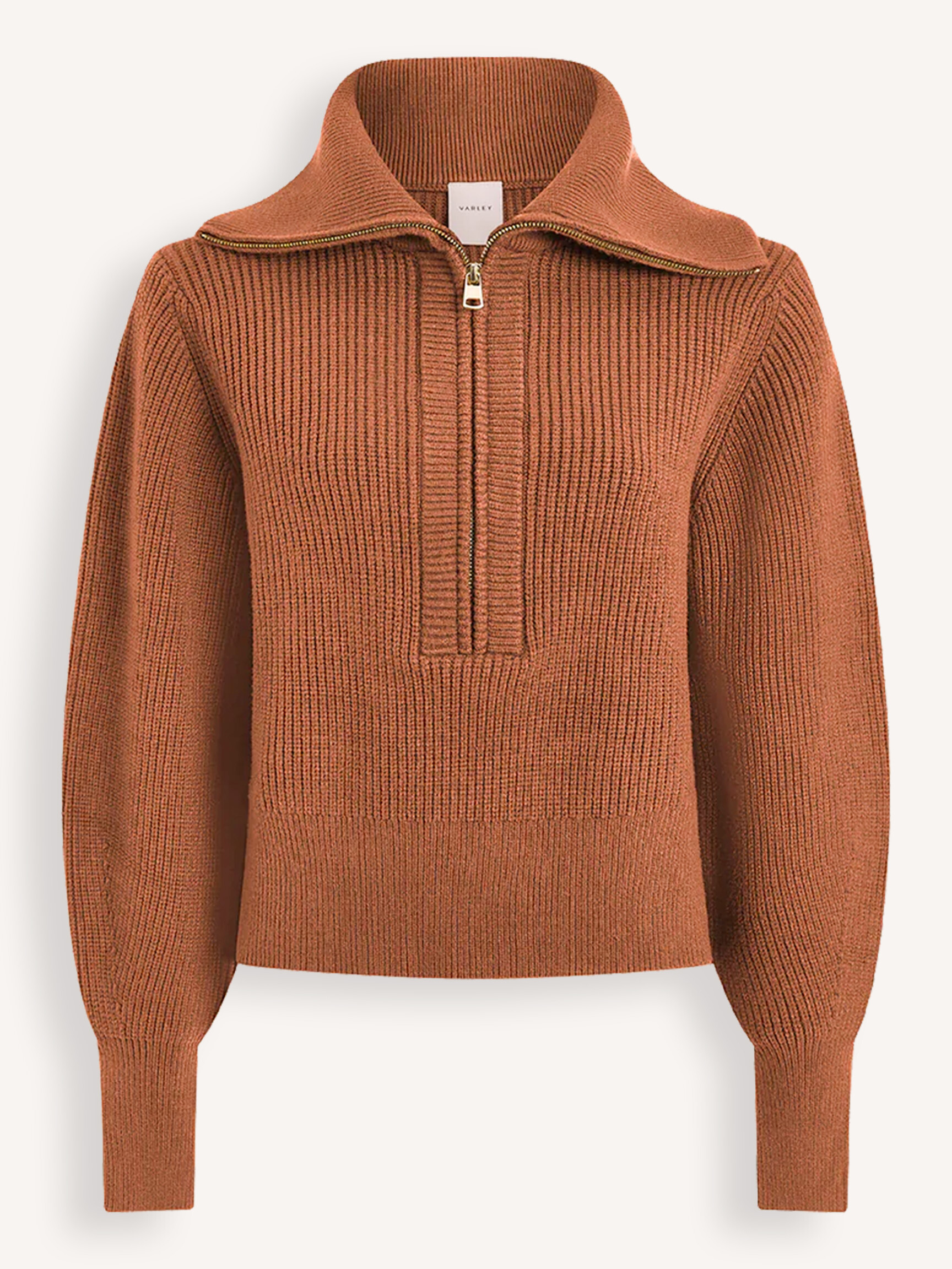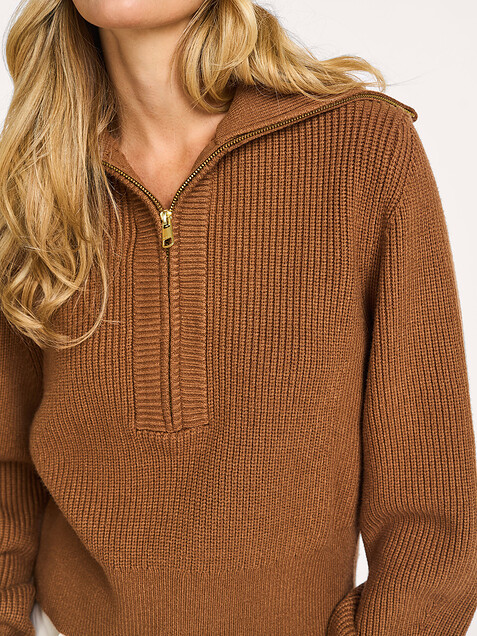 - Style: MAURA HALF ZIP RIB KNIT VAR02741 CARAMEL PECAN