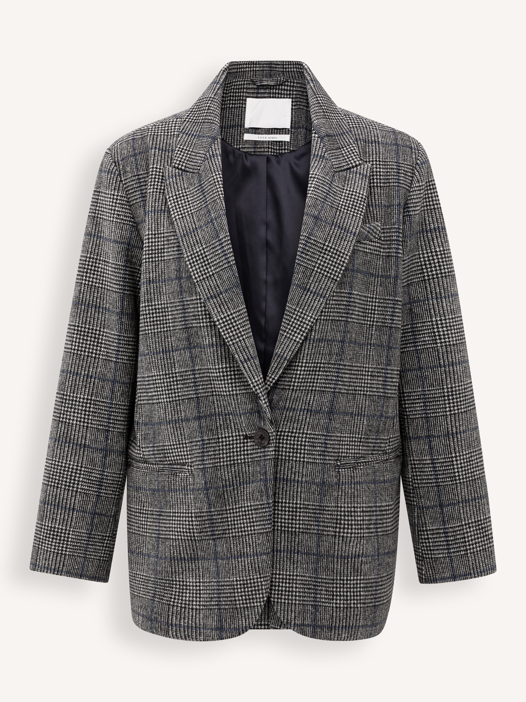 - Style: Oversized checked blazer with button closure 01-501074-510 715041 CNTRS GRAY DSSN