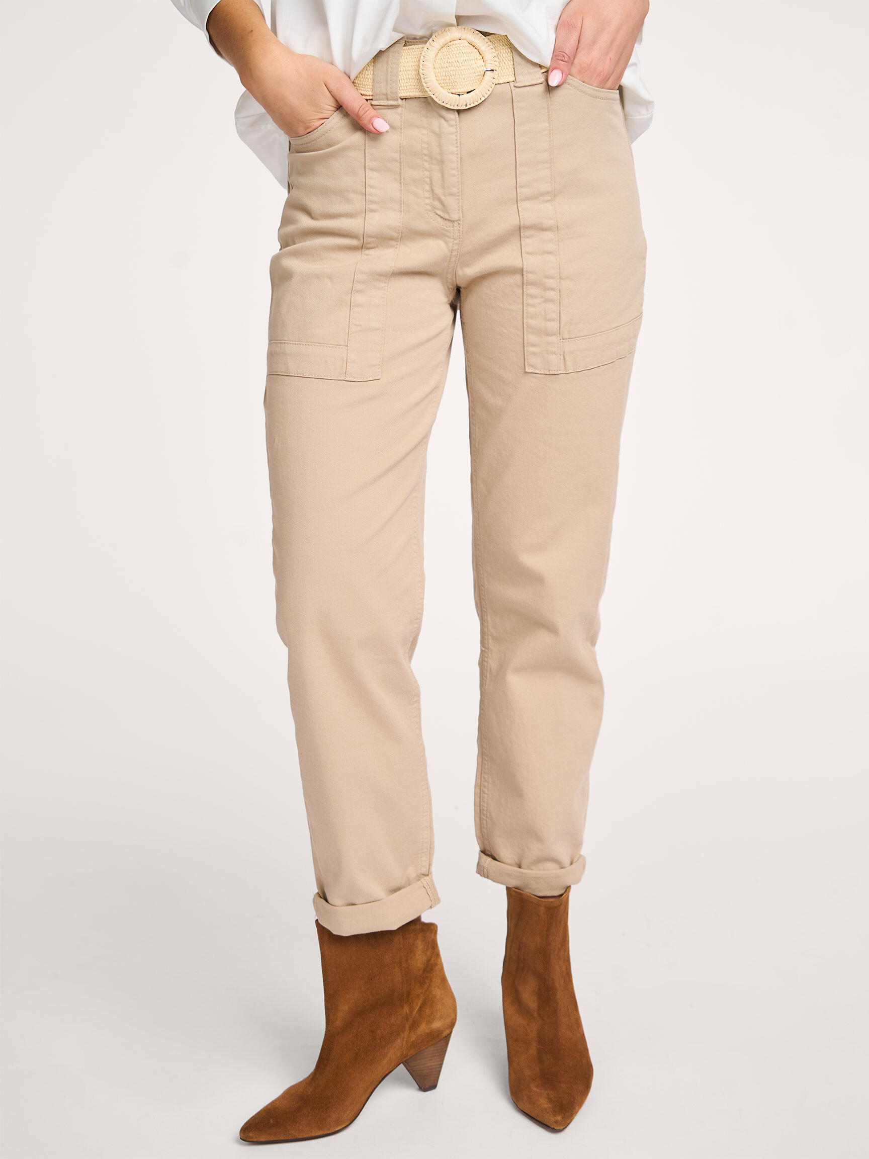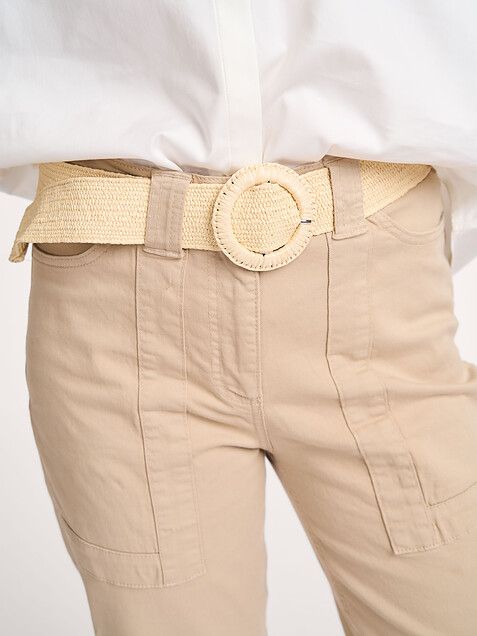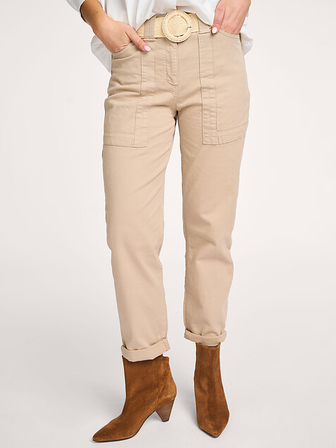 Back Yaya Cotton mix trousers 44.98 89.95 Color: Beige Choose your size 36 (36) 44.98 38 (38) 44.98 last item 40 (40) 44.98 Help on sizes True to size Our model is 1.78m tall and wears size 36. Add to my bag Orangebag-number: S1304130 Order before 21:45, shipment today Free shipping from EUR 99,- 30 days consideration period Composition & Specifications Material Woven Stretch quality Fabric: 97% cotton, 3% elastane. 30C machine wash Fit Tapered legs True to size Our model is 1.78m tall and wears size 36. Details High waist Zip fastening Button fastening Side pocket(s) Stitched pocket(s) Belt loops at the waist Folded at the bottom of the legs Lenght inside legs 36 in size approximately 68 cm. Style: 01-301179-503 99998 TWILL BEIGE Orangebag-number: S1304130 Combine with More from Yaya Shipping & Return Free, insured shipping (≥EUR 99) to NL, BE and DE. Free return service from NL, BE and DE for an exchange; EUR 4.95 without an exchange. Next day delivery on orders made on business days before 21:45 hrs (NL,BE). DE + 1 business day. Insured shipping. Options; not at neighbor, evening or pick up point Free shipping on exchange orders EUR 99 and up (all Countries) Easy online exchange without payment (also with refund) Refund paid within 3 business days .