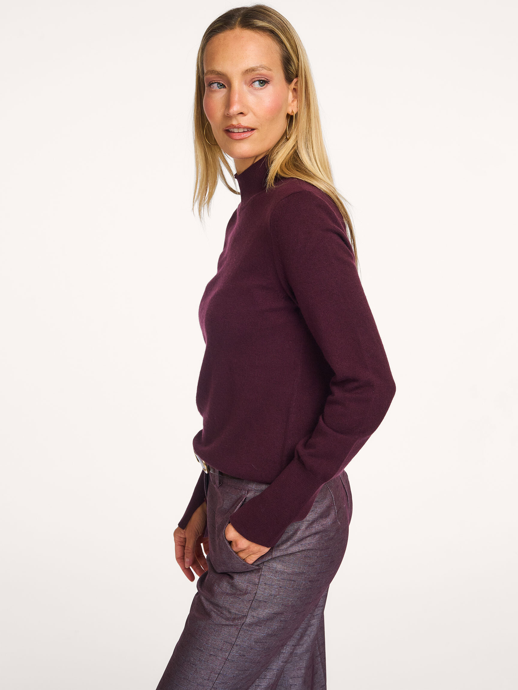 - Style: Fine knit sweater with mock neck 01-000532-511 91619 FUDGE PURPLE
