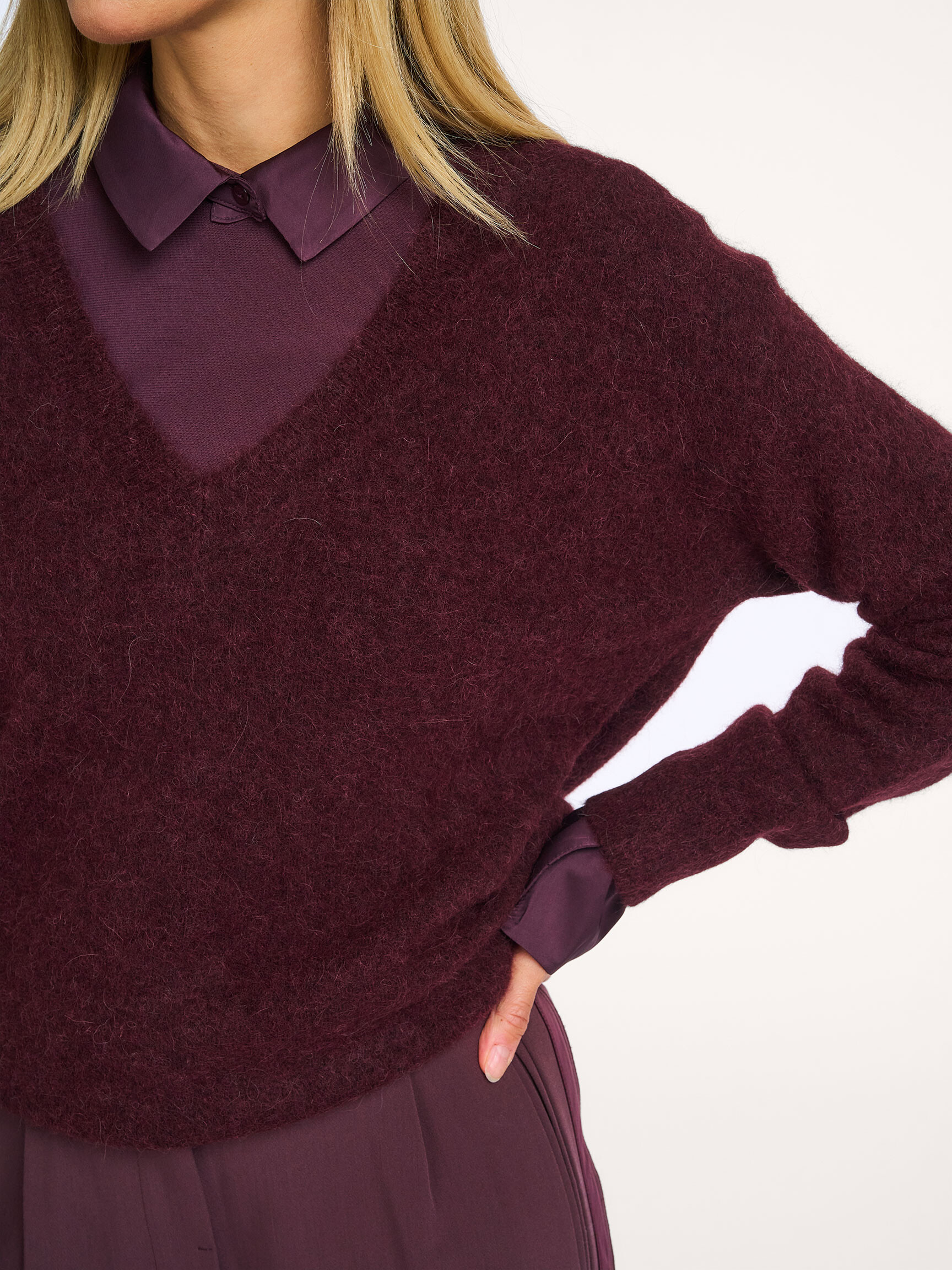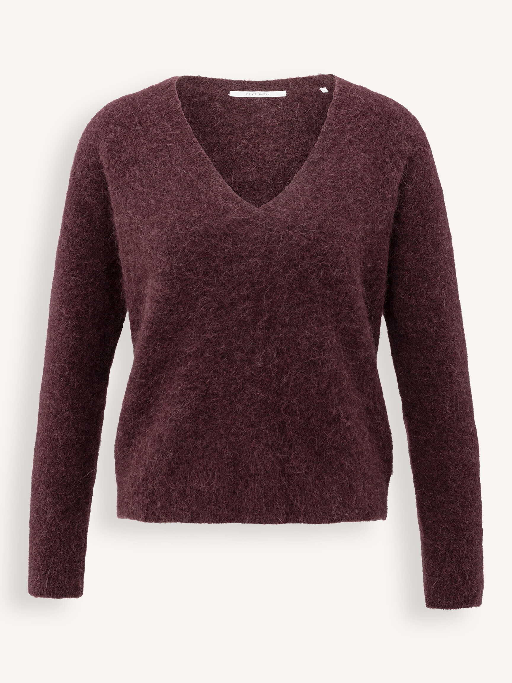 - Style: Soft V-neck sweater with long sleeves 01-000536-511 91619 FUDGE PURPLE