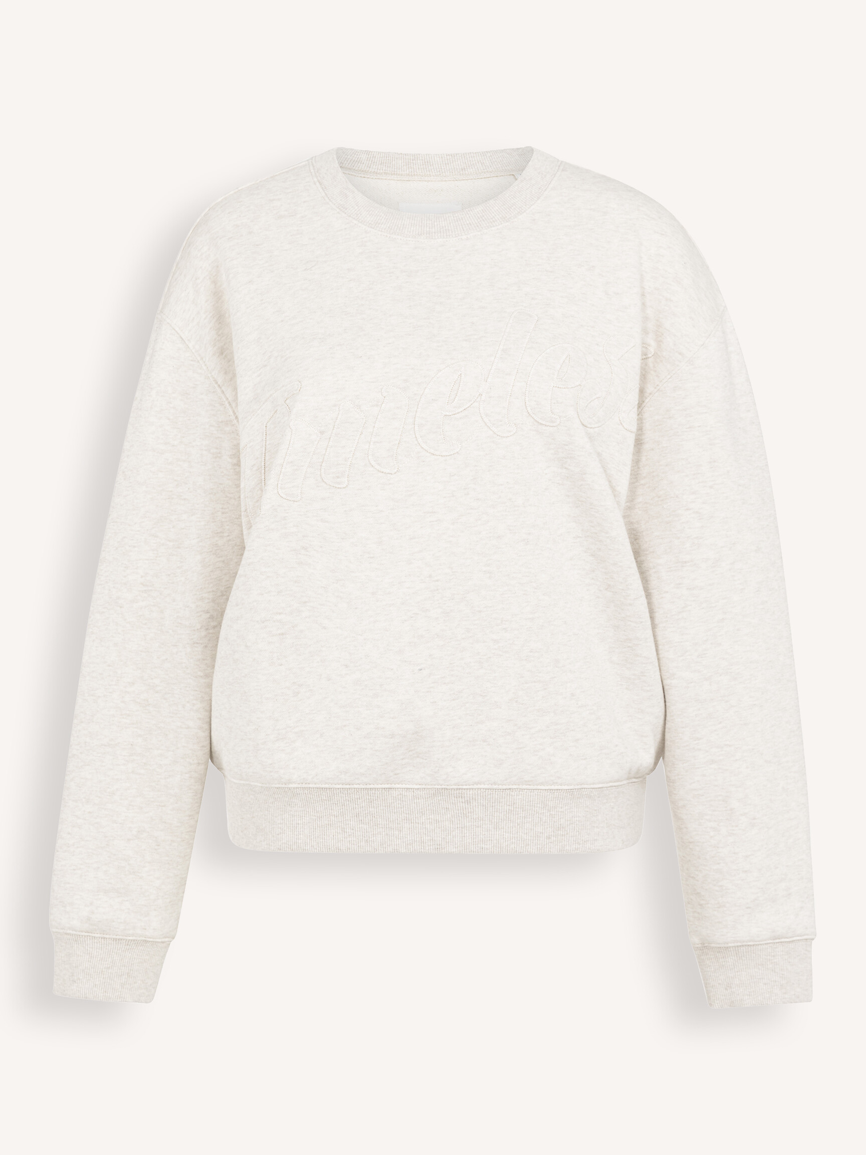 - Style: Sweater with stitched-on text 01-109105-601 990402 HEATHER GREY MELANGE