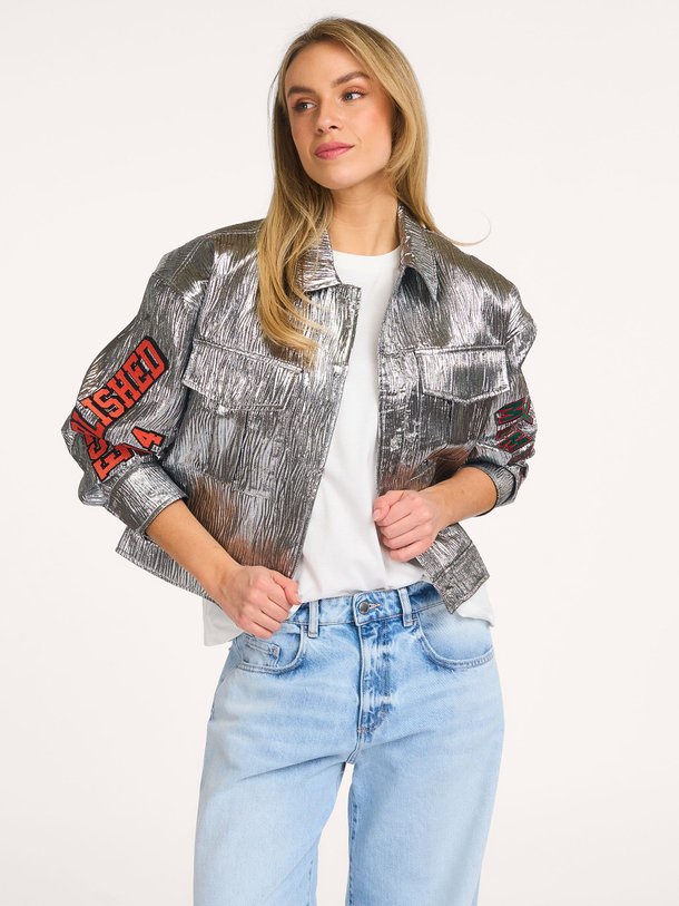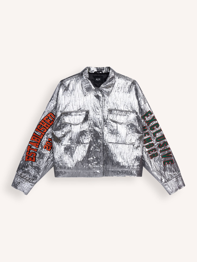 Alix The Label ladies woven silver artwork jacket | Orangebag