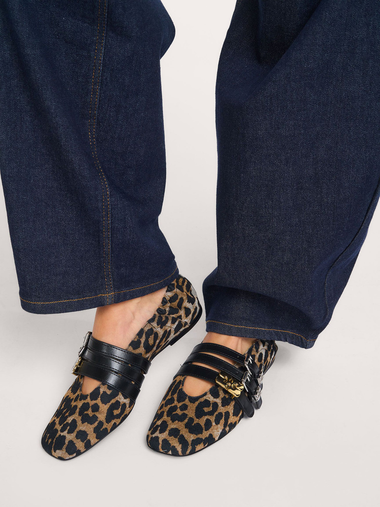 Ganni Sue Triple Ballerina Flocked Denim Printed | Orangebag