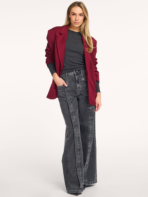 - Style: ladies woven oversized blazer 2512420496 512 bordeaux