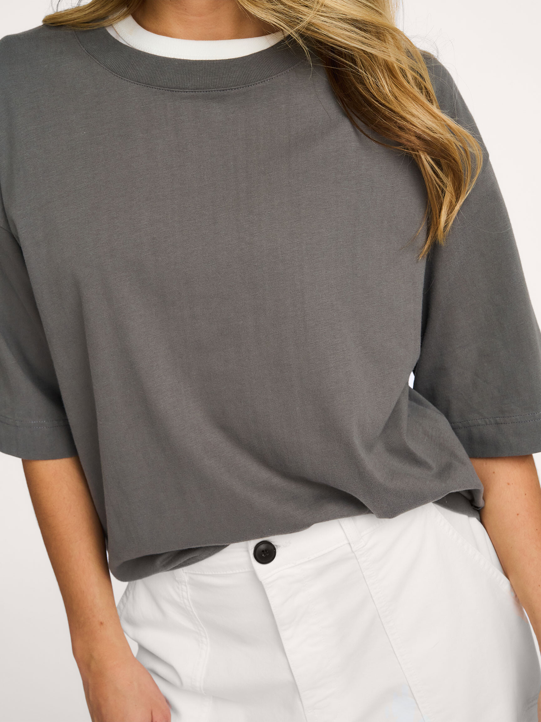 Terug Bellerose Fiore, katoenen T-shirt 59,- Bonus 2,95 Kleur: Donkergrijs Kies je maat XS (XS) 59,- last item S (S) 59,- M (M) 59,- L (L) 59,- XL (XL) 59,- last item Uitleg over maten Valt normaal op maat Ons model Dané is 1.78m lang en draagt maat S. In winkelmand Orangebag-nummer: S1376786 Voor 21:45 besteld, morgen in huis Gratis bezorging vanaf €99 30 dagen bedenktijd Samenstelling & Specificaties Materiaal Jersey Katoen Fabric: 100% cotton 40C machine wash Fit Losvallend model Valt normaal op maat Ons model Dané is 1.78m lang en draagt maat S. Details Effen Korte mouwen Ronde halslijn met ribboord Lengte in maat S circa 60 cm Style: FIORE BW261344 T1831 382 ORAGE Orangebag-nummer: S1376786 Combineer met Meer van Bellerose Verzenden & Retour Gratis verzekerd verzonden (≥ EUR 99) NL, BE en DE. Voor het retourneren vanuit NL, BE en DE vragen wij een bijdrage van EUR 4,95 Op werkdagen voor 21:45 besteld, volgende dag in huis (NL,BE). DE +1 dag. Verzending met handtekening. Opties; niet bij buren, avond of ophaallocatie Gratis verzending van ruilbestelling vanaf EUR 99 (alle landen). Online ruilen zonder opnieuw te betalen (ook met geld terug). Terugbetaling binnen 3 werkdagen.
