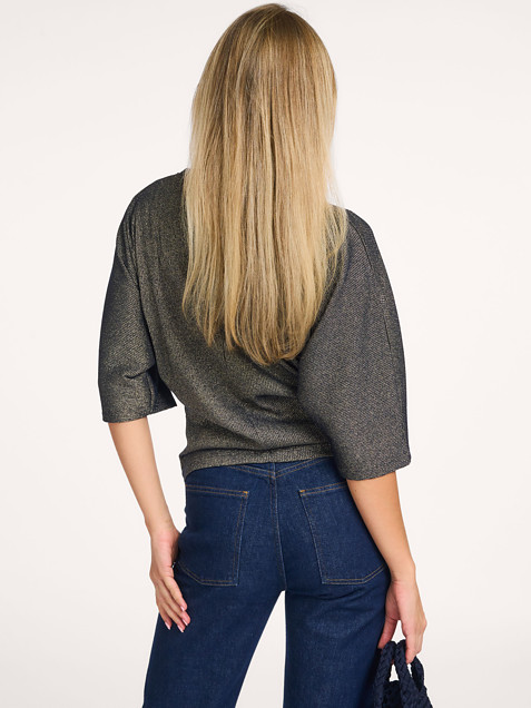 - Fabric: 64% viscose, 19% metallic, 12% polyamide, 5% elastane.