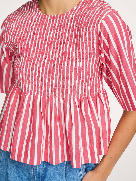 Terug By-Bar Runa, organic cotton gestreepte top Duurzamer 119,95 Bonus 6,- Kleur: Rood Kies je maat 34 (XS) 119,95 last item 36 (S) 119,95 last item 38 (M) 119,95 40 (L) 119,95 42 (XL) 119,95 last item Uitleg over maten Valt normaal op maat Ons model Dané is 1.78m lang en draagt maat 36. In winkelmand Orangebag-nummer: S1372063 Voor 21:45 besteld, morgen in huis Gratis bezorging vanaf €99 30 dagen bedenktijd Samenstelling & Specificaties Materiaal Geweven Gestreept dessin Smock details Fabric: 100% organic cotton 30C machine wash Fit Uitlopend model Aansluitend Valt normaal op maat Ons model Dané is 1.78m lang en draagt maat 36. Details Korte mouwen Ronde halslijn Plooi(en) voorzijde Plooi(en) achterzijde Lengte in maat 36 circa 53 cm Style: runa stripe top 26112056 1324 red stripe Orangebag-nummer: S1372063 Combineer met Meer van By-Bar Verzenden & Retour Gratis verzekerd verzonden (≥ EUR 99) NL, BE en DE. Gratis retourservice NL, BE en DE bij ruiling; EUR 4,95 bij retour zonder ruiling. Op werkdagen voor 21:45 besteld, volgende dag in huis (NL,BE). DE +1 dag. Verzending met handtekening. Opties; niet bij buren, avond of ophaallocatie Gratis verzending van ruilbestelling vanaf EUR 99 (alle landen). Online ruilen zonder opnieuw te betalen (ook met geld terug). Terugbetaling binnen 3 werkdagen.