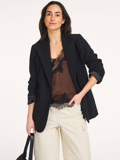 Terug Co'Couture Vola, viscosemix blazer 209,- Bonus 10,45 Kleur: Zwart Kies je maat 34 (XS) 209,- last item 36 (S) sold out, email me 38 (M) 209,- 40 (L) 209,- 42 (XL) sold out, email me Uitleg over maten Valt normaal op maat Ons model Lotte is 1.76m lang en draagt maat 36. In winkelmand Orangebag-nummer: S1395842 Voor 21:45 besteld, morgen in huis Gratis bezorging vanaf €99 30 dagen bedenktijd Samenstelling & Specificaties Materiaal Geweven Stretch kwaliteit Viscose Fabric: 76% polyester, 18% viscose, 6% elastane.Lining: 95% polyester, 5% elastane. Do not wash Fit Iets oversized Valt normaal op maat Ons model Lotte is 1.76m lang en draagt maat 36. Details Effen Lange mouwen Revers Knoopsluiting Paspelzak(ken) Klepzak(ken) Split(ten) achterzijde Geheel gevoerd Schoudervulling Lengte in maat 36 circa 76 cm Style: VolaCC Single Oversize Blazer 30050 96 Black Orangebag-nummer: S1395842 Hou me op de hoogte Maat niet meer aanwezig? Ontvang een email zodra deze weer beschikbaar komt. Maat Kies je maat 36 (S) : 209,- 42 (XL) : 209,- Naam E-mail Combineer met Meer van Co'Couture Verzenden & Retour Gratis verzekerd verzonden (≥ EUR 99) NL, BE en DE. Voor het retourneren vanuit NL, BE en DE vragen wij een bijdrage van EUR 4,95 Op werkdagen voor 21:45 besteld, volgende dag in huis (NL,BE). DE +1 dag. Verzending met handtekening. Opties; niet bij buren, avond of ophaallocatie Gratis verzending van ruilbestelling vanaf EUR 99 (alle landen). Online ruilen zonder opnieuw te betalen (ook met geld terug). Terugbetaling binnen 3 werkdagen.
