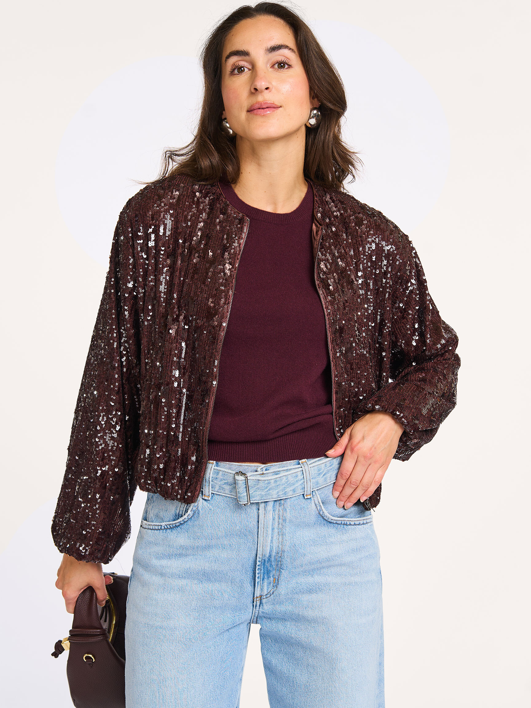 - Style: SophieCC Sequin Balloon Jacket 30371 145 Dark Brown