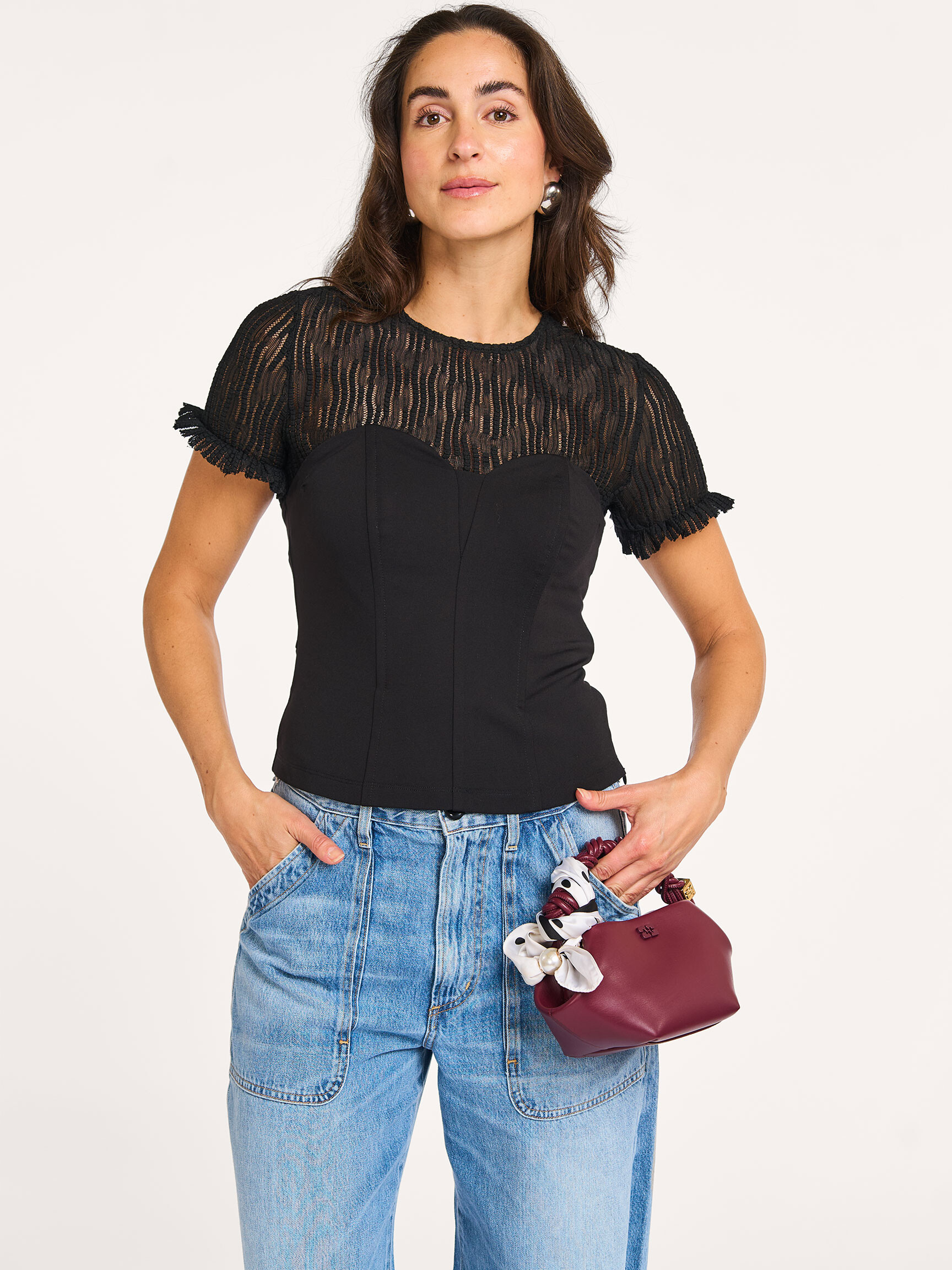 - Style: ColtonCC Lace Mix Top 35962 96 Black