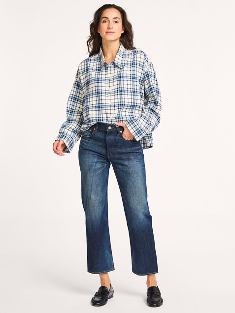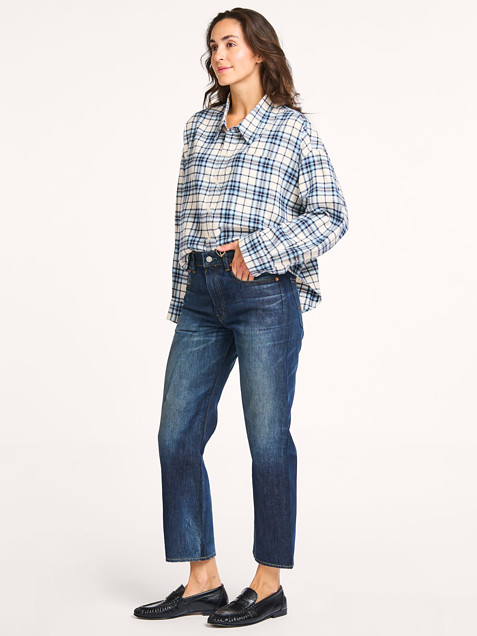 - Style: CROPPED BUTTON FRONT SHIRT DSW0024-1018 1018 ECRU/LIGHT BLUE