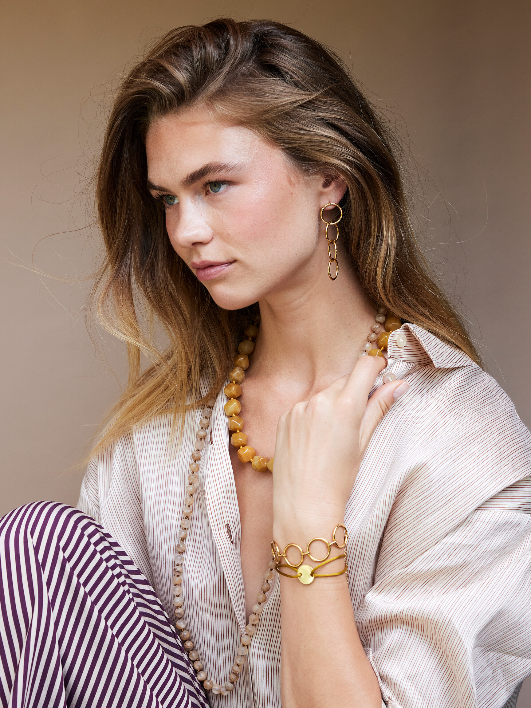 - Style: Organische gemstone ketting XL KET34411 Warm Geel