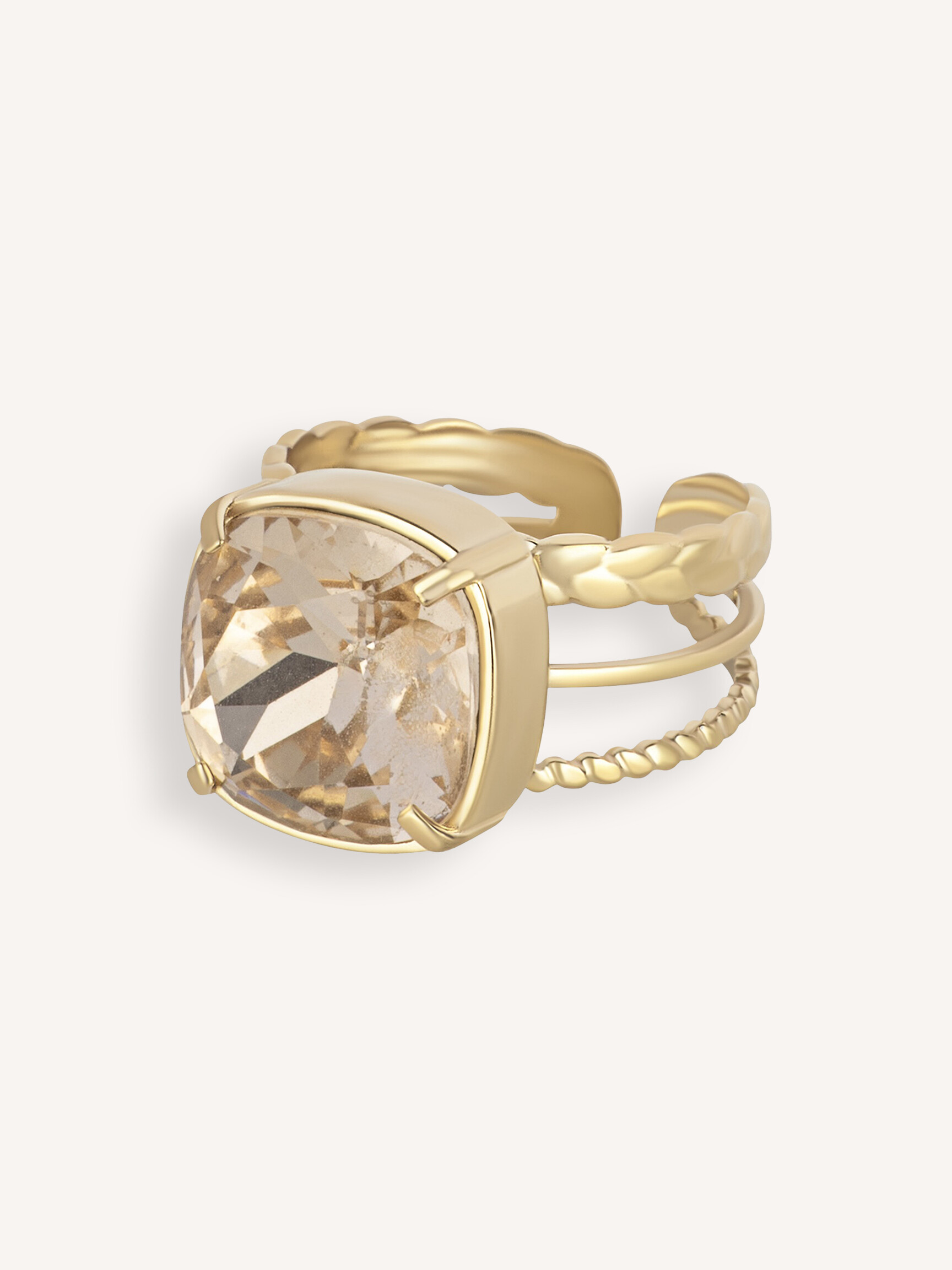 - Style: Ring met vierkante steen / zacht apricot RING852043