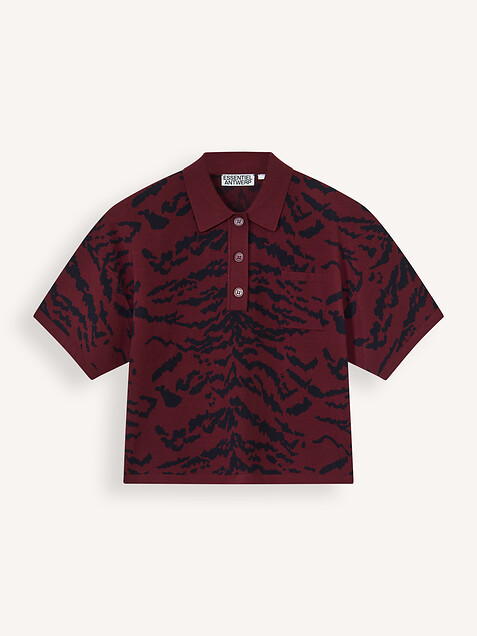 Intarsia, viscosemix polo top met dessin