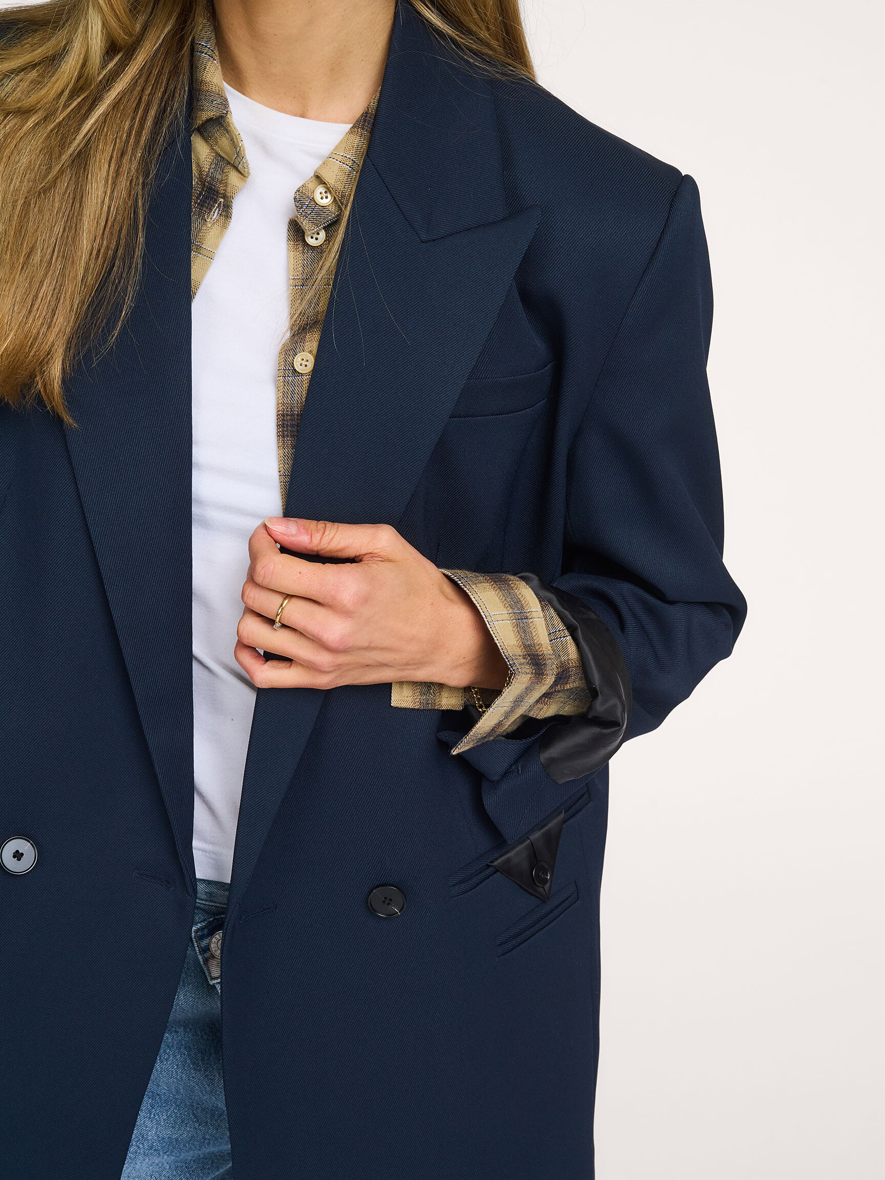 Terug Haute L'Amitié Geweven oversized blazer 210,- Bonus 10,50 Kleur: Donkerblauw Kies je maat 34 (XS) sold out, email me 36 (S) 210,- 38 (M) 210,- 40 (L) 210,- 42 (XL) 210,- Uitleg over maten Valt normaal op maat Ons model Dané is 1.78m lang en draagt maat 36. In winkelmand Orangebag-nummer: S1376496 Voor 21:45 besteld, morgen in huis Gratis bezorging vanaf €99 30 dagen bedenktijd Samenstelling & Specificaties Materiaal Geweven Stretch kwaliteit Fabric: 95% polyester, 5% spandex.Lining: 100% polyester Dry clean only Fit Iets oversized Valt normaal op maat Ons model Dané is 1.78m lang en draagt maat 36. Details Effen Lange mouwen Split met knopen aan de mouwen Revers Double breasted knoopsluiting Paspelzak(ken) Split(ten) achterzijde Geheel gevoerd Lengte in maat 36 circa 78 cm Style: Premiere Oversize Triangle Blazer HL10273 Navy Orangebag-nummer: S1376496 Hou me op de hoogte Maat niet meer aanwezig? Ontvang een email zodra deze weer beschikbaar komt. Maat Kies je maat 34 (XS) : 210,- Naam E-mail Combineer met Meer van Haute L'Amitié Verzenden & Retour Gratis verzekerd verzonden (≥ EUR 99) NL, BE en DE. Gratis retourservice NL, BE en DE bij ruiling; EUR 4,95 bij retour zonder ruiling. Op werkdagen voor 21:45 besteld, volgende dag in huis (NL,BE). DE +1 dag. Verzending met handtekening. Opties; niet bij buren, avond of ophaallocatie Gratis verzending van ruilbestelling vanaf EUR 99 (alle landen). Online ruilen zonder opnieuw te betalen (ook met geld terug). Terugbetaling binnen 3 werkdagen.