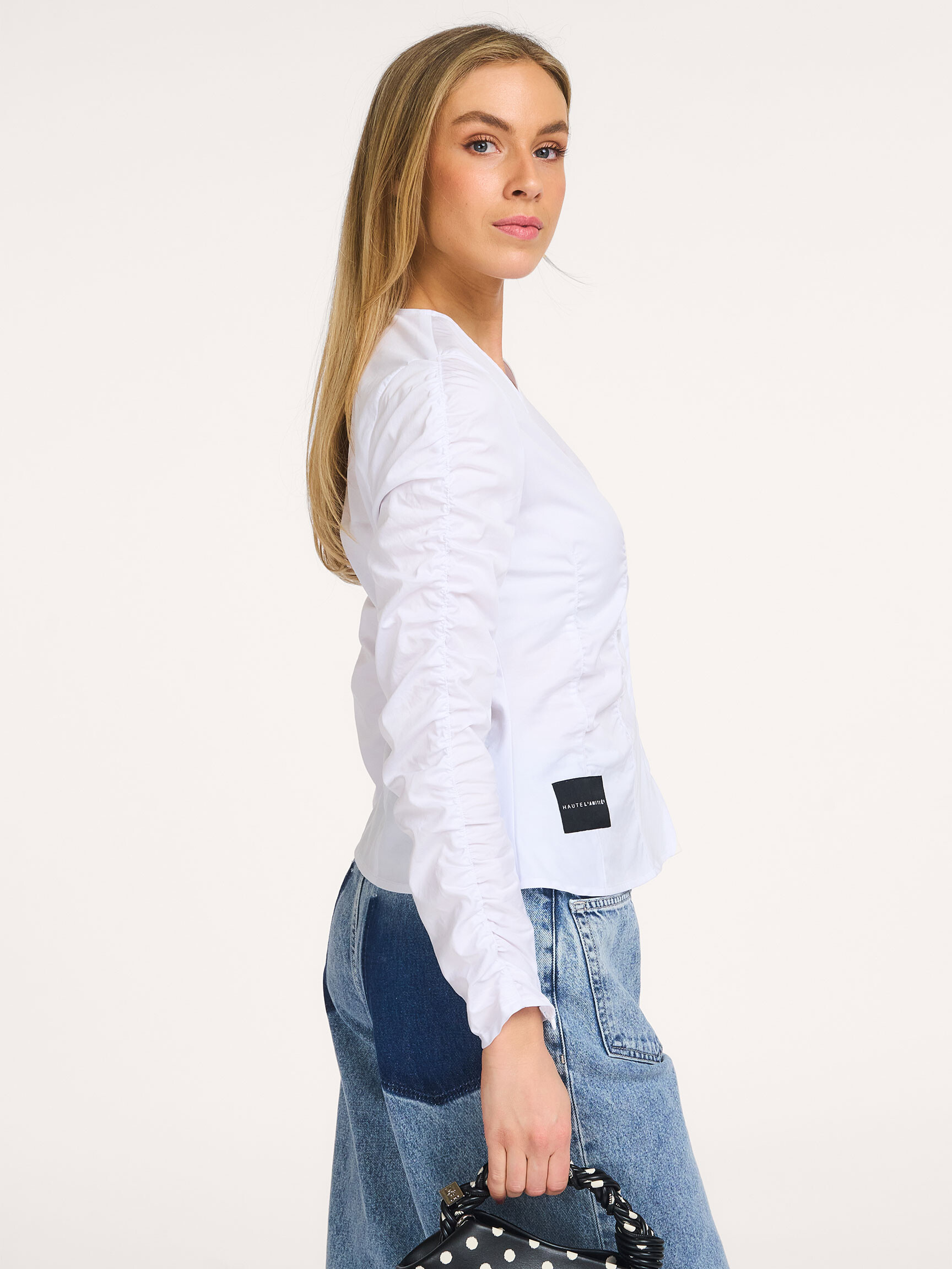 Terug Haute L'Amitié Pure, katoenmix blouse 110,- Bonus 5,50 Kleur: Wit Kies je maat 34 (XS) 110,- last item 36 (S) 110,- 38 (M) 110,- 40 (L) 110,- 42 (XL) 110,- last item Uitleg over maten Valt normaal op maat Ons model Dané is 1.78m lang en draagt maat 36. In winkelmand Orangebag-nummer: S1376508 Voor 21:45 besteld, morgen in huis Gratis bezorging vanaf €99 30 dagen bedenktijd Samenstelling & Specificaties Materiaal Geweven Stretch kwaliteit Katoen Fabric: 62% cotton, 35% polyamide, 3% elastane. 40C machine wash Fit Aansluitend Valt normaal op maat Ons model Dané is 1.78m lang en draagt maat 36. Details Effen Lange mouwen Split met ritssluiting onderaan mouwen V-hals Haaksluiting Plooi(en) voorzijde Plooi(en) achterzijde Applicatie(s) Lengte in maat 36 circa 57 cm Style: Pure Gather Shirt HL10511 White Orangebag-nummer: S1376508 Combineer met Meer van Haute L'Amitié Verzenden & Retour Gratis verzekerd verzonden (≥ EUR 99) NL, BE en DE. Voor het retourneren vanuit NL, BE en DE vragen wij een bijdrage van EUR 4,95 Op werkdagen voor 21:45 besteld, volgende dag in huis (NL,BE). DE +1 dag. Verzending met handtekening. Opties; niet bij buren, avond of ophaallocatie Gratis verzending van ruilbestelling vanaf EUR 99 (alle landen). Online ruilen zonder opnieuw te betalen (ook met geld terug). Terugbetaling binnen 3 werkdagen.