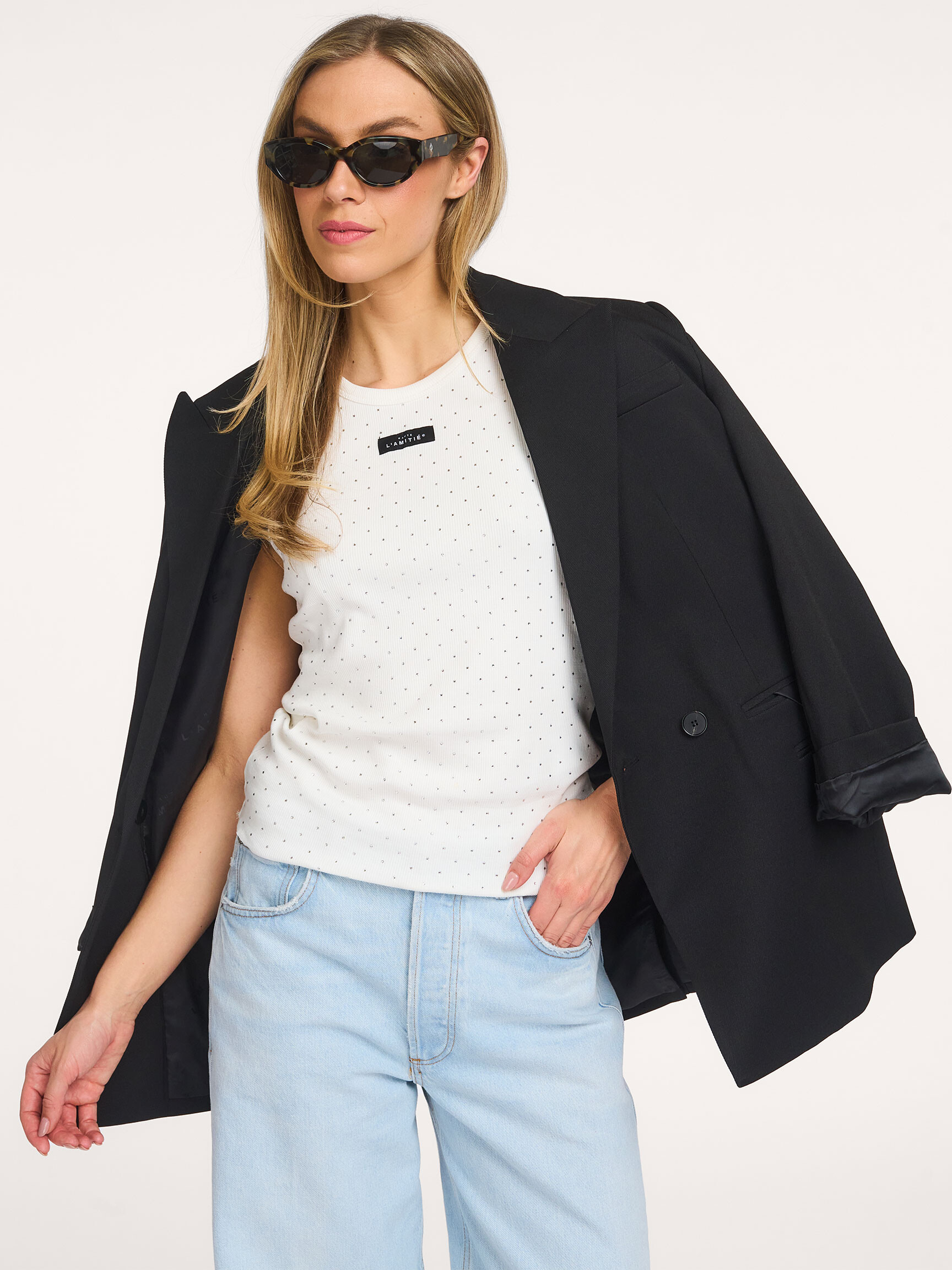 - Ons model Dané is 1.78m lang en draagt maat S.