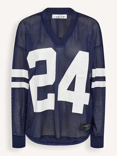 Drift Number, geweven opengewerkte top met print
