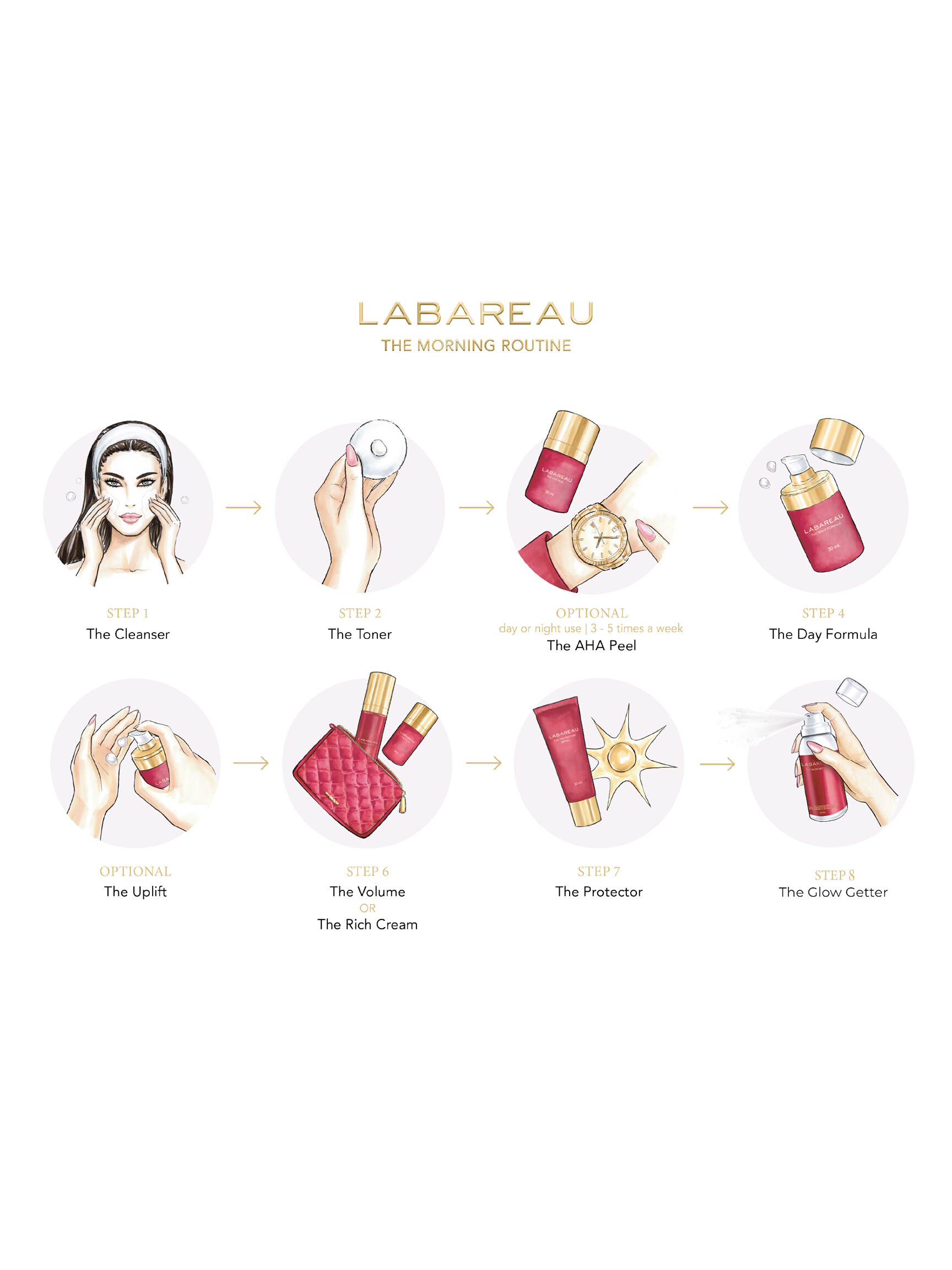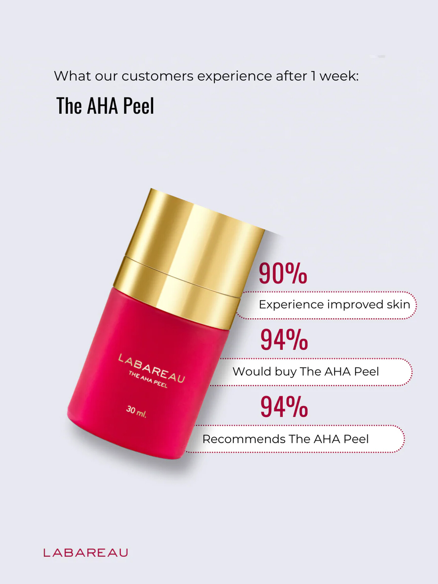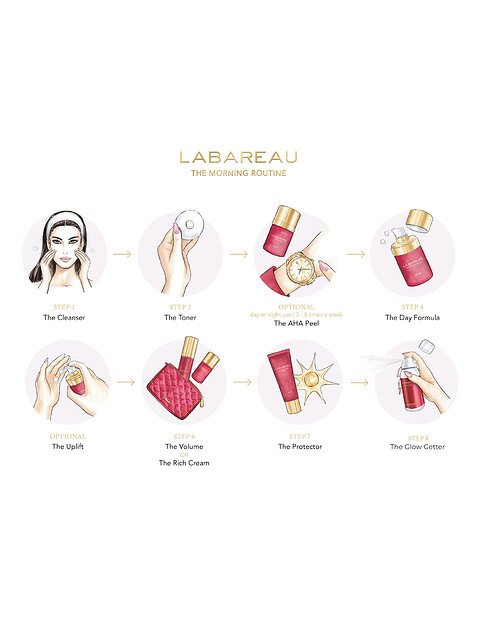 - Verdeel twee pompjes van The AHA Peel gelijkmatig over de huid en vermijd het gebied rond de ogen.