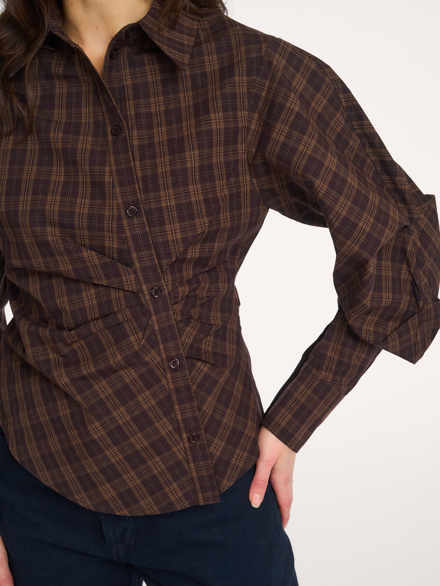 - Style: Neoella Check Shirt 167459 676 Dark brown