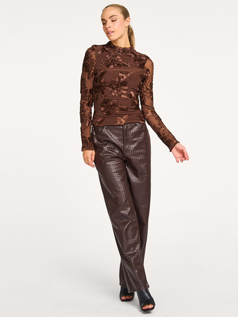 Dixie, geweven leatherlook wide leg broek