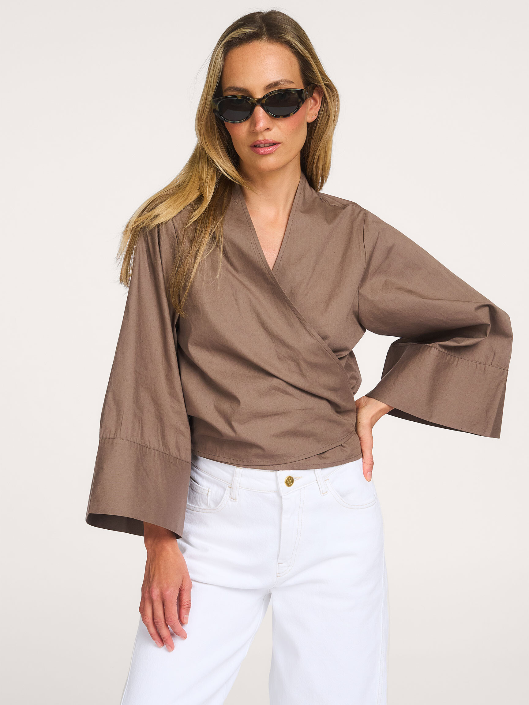 - Style: Ilies Kimono sleeve wrap top T601-1166 429 Mud
