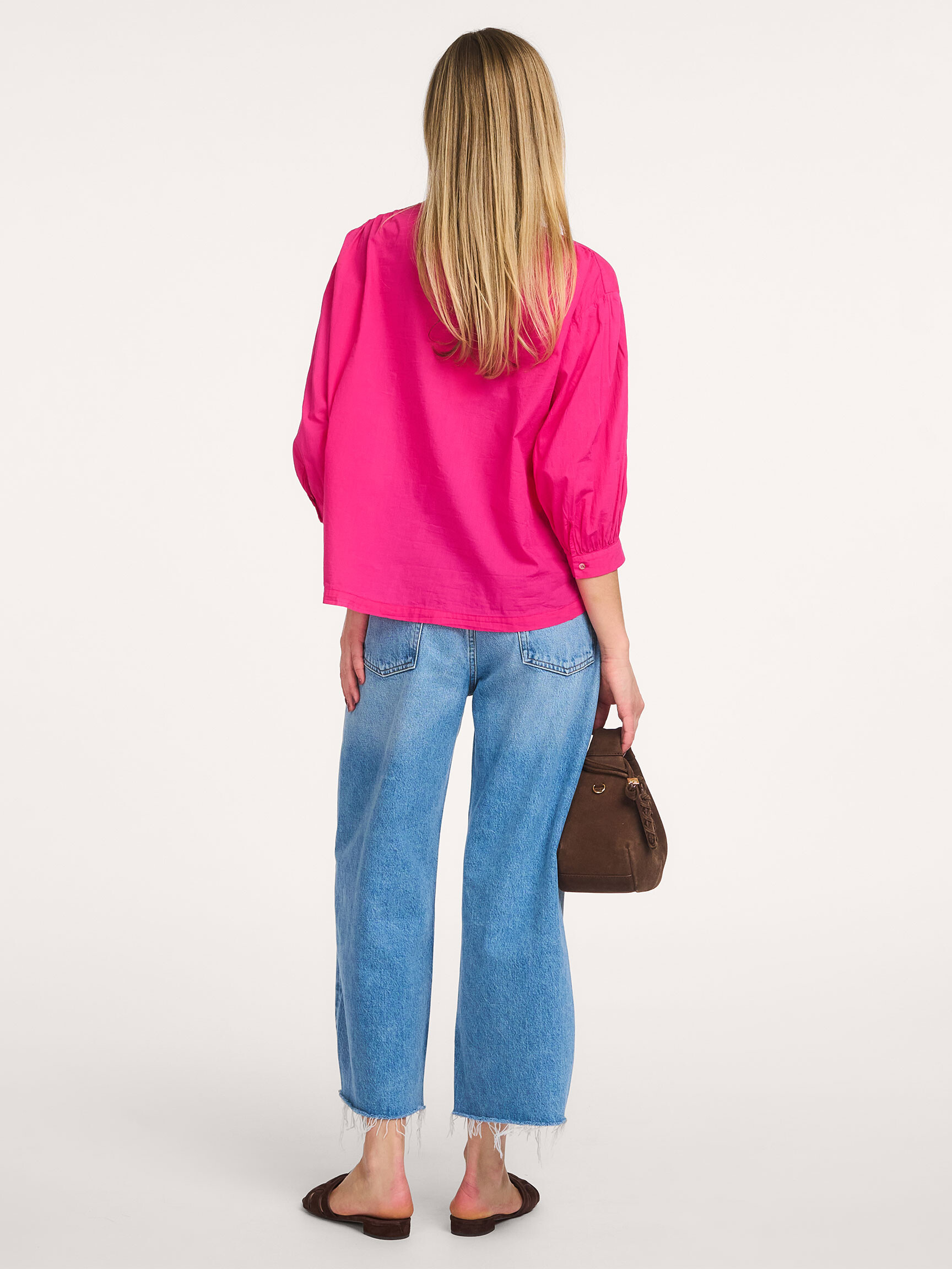 Terug Sacrécoeur Aurora, katoenen blouse 130,- Bonus 6,50 Kleur: Roze Kies je maat 34 (XS) 130,- last item 36 (S) 130,- 38 (M) 130,- 40 (L) 130,- 42 (XL) 130,- last item Uitleg over maten Valt normaal op maat Ons model Dané is 1.78m lang en draagt maat 36. In winkelmand Orangebag-nummer: S1382329 Voor 21:45 besteld, morgen in huis Gratis bezorging vanaf €99 30 dagen bedenktijd Samenstelling & Specificaties Materiaal Geweven Katoen Fabric: 100% cotton 30C machine wash Fit Losvallend model Valt normaal op maat Ons model Dané is 1.78m lang en draagt maat 36. Details Effen 3/4 mouwen Plooien bij de mouwinzet Manchetten met knopen Pofmouwen Ronde halslijn Blinde knoopsluiting Split(ten) zijnaden Plooi(en) voorzijde Plooi(en) achterzijde Lengte in maat 36 circa 57 cm Style: CARLA/HIBIS CARLA/HIBIS ROSE Orangebag-nummer: S1382329 Combineer met Meer van Sacrécoeur Verzenden & Retour Gratis verzekerd verzonden (≥ EUR 99) NL, BE en DE. Voor het retourneren vanuit NL, BE en DE vragen wij een bijdrage van EUR 4,95 Op werkdagen voor 21:45 besteld, volgende dag in huis (NL,BE). DE +1 dag. Verzending met handtekening. Opties; niet bij buren, avond of ophaallocatie Gratis verzending van ruilbestelling vanaf EUR 99 (alle landen). Online ruilen zonder opnieuw te betalen (ook met geld terug). Terugbetaling binnen 3 werkdagen.
